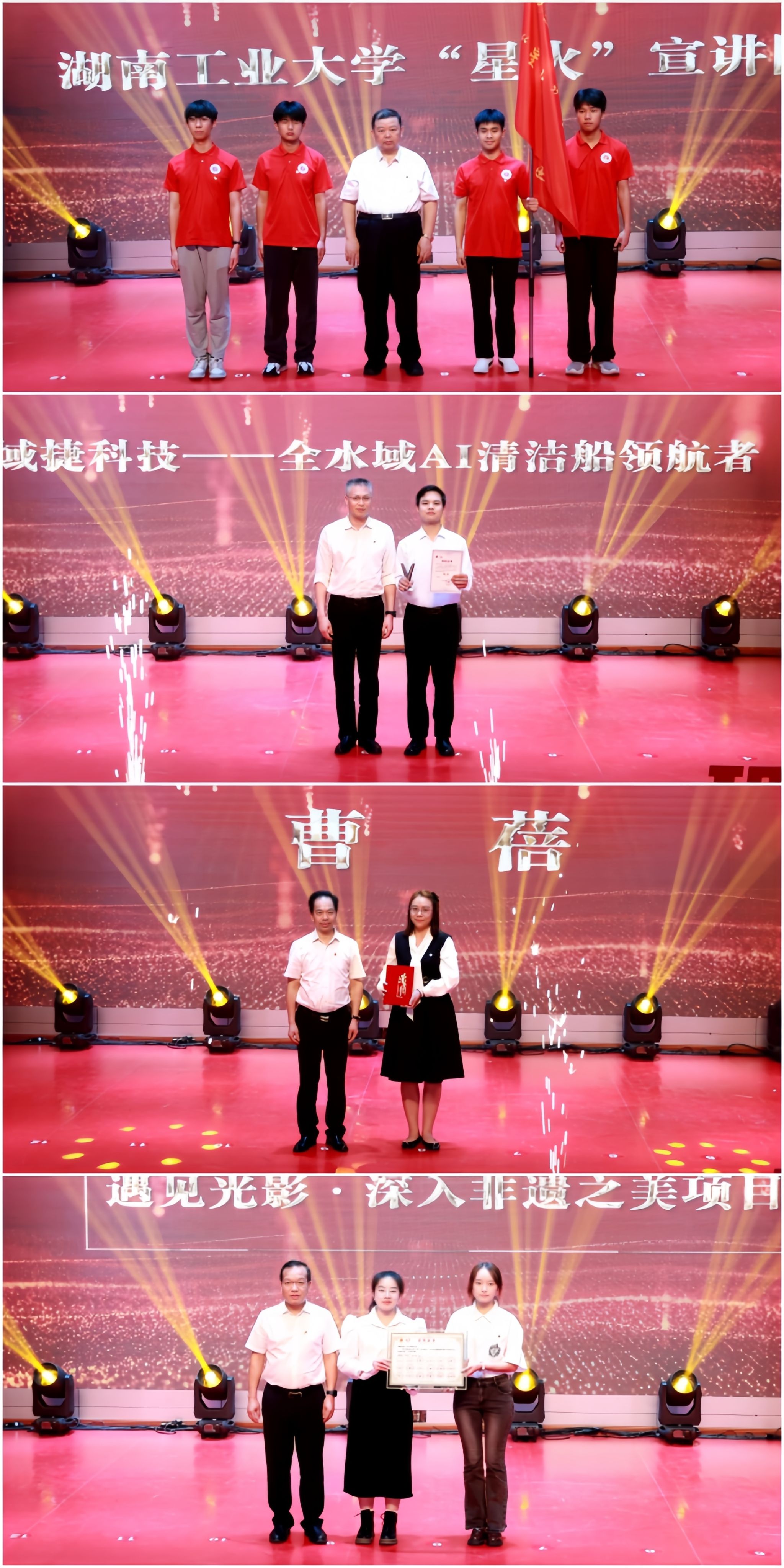 刘望向全校青年学生和青年老师们致以节日的问候,对广大团干部和青年工作者的辛勤付出表示衷心感谢,向受到表彰的先进集体和个人表示热烈祝贺。他对过去一年学校共青团工作所取得的成绩给予了肯定,并对未来的工作提出了殷切期望。他对团员青年们提出了四点希望:一是要立根固本,坚守爱国之心。心中应当凝聚对祖国的深情厚意,将小我融入大我,真正增强在盛世之中不负时代的使命感和责任感;二是要立梦前行,点亮理想之光。敢于有梦、勇于追梦、勤于圆梦,用青春的激情和汗水浇灌梦想之花;三是要立身明德,筑牢品德之魂。把正确的道德认知、自觉的道德养成、积极的道德实践紧密结合起来,自觉树立和践行社会主义核心价值观,带头倡导良好社会风尚;四是要立才修业,夯实能力之基。自觉加强学习,不断增强本领,孜孜不倦、刻苦努力,做锐意进取、开拓创新的时代先锋。把奋斗作为亮丽青春的厚重底色,用忠诚诠释人生最华丽的篇章,创造更加辉煌的青春业绩,唱响更加壮丽的青春旋律。