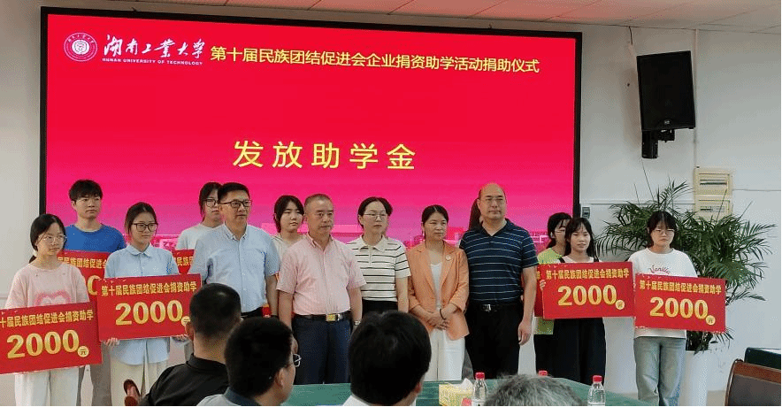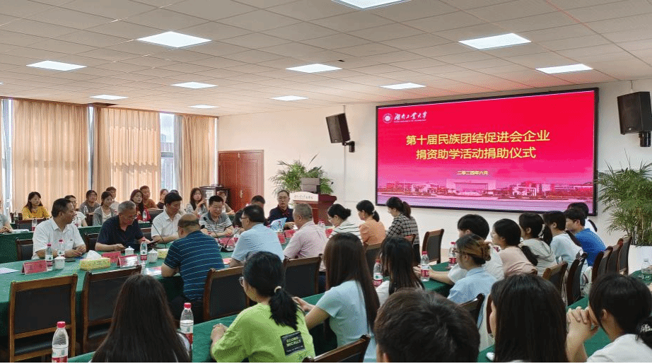 6月11日下午,德赢第十届民族团结促进会企业捐资助学活动在法学院402会议室举行,副校长范晓阳出席,株洲市少数民族联谊会秘书长刘兴泉,捐资助学单位代表覃雪枝、张富良、周昱君、陈海波、肖芬,宣传统战部、校友联络与服务中心、学工部、法学院,以及37名受助学生参加捐赠会议。