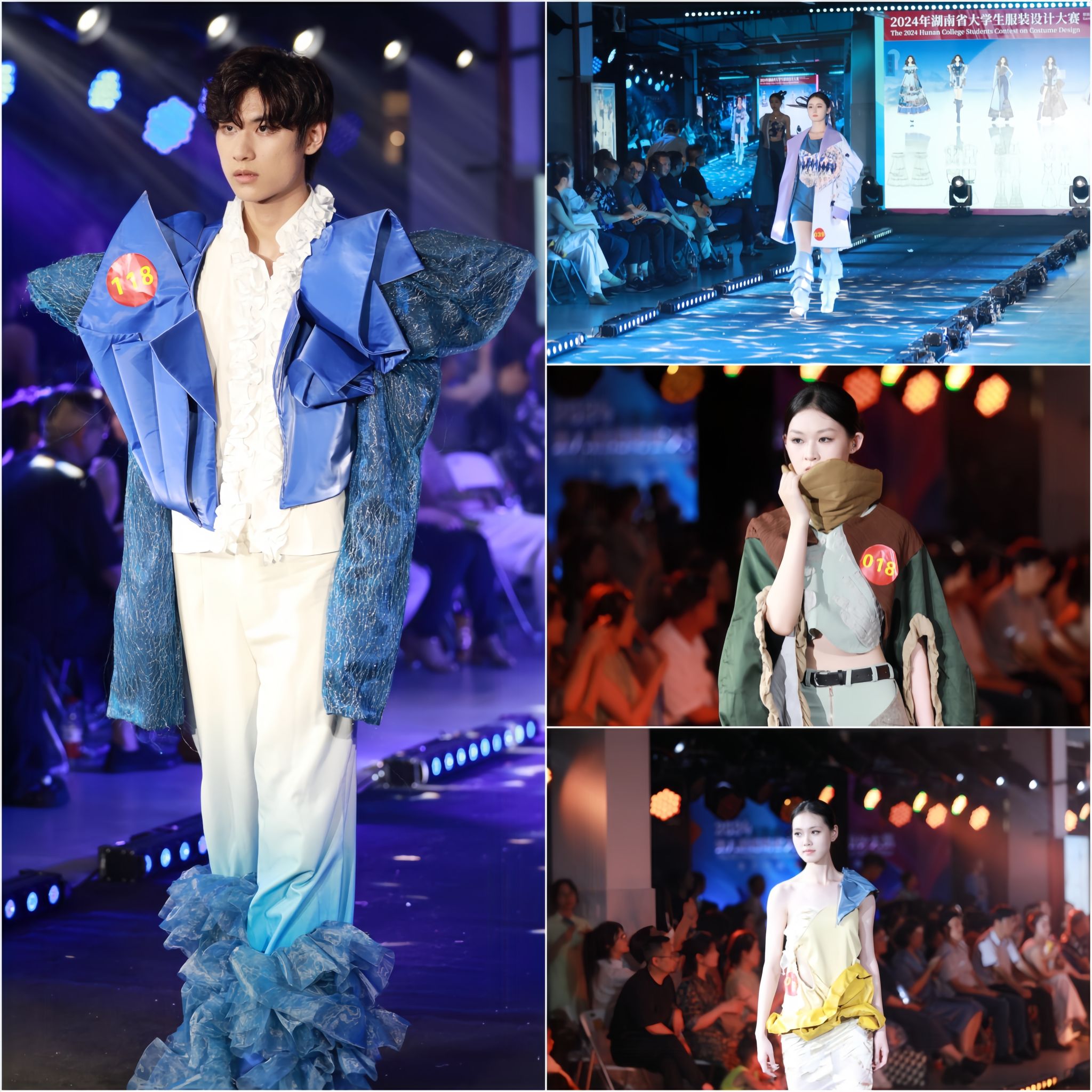 本届大赛以“聚力时尚·高教创新”为主题,旨在发掘与培养更多具有创新精神和实战能力的时尚设计新星。上午,服装配饰设计赛决赛率先展开,来自全省各大高校的参赛选手们展示了他们精心设计的作品,这些作品设计新颖、创意独特、工艺精湛,充分展现了年轻设计师们的艺术追求和时尚品位。评委们经过认真评审,最终评选出优胜者。下午,领导及嘉宾们参观了株洲动力谷,深入了解了株洲在科技创新和产业发展方面的卓越成果,为大赛增添了丰富的内涵。随着夜幕的降临,服装成衣设计赛决赛及展演正式拉开帷幕。比赛现场灯光璀璨、音乐激昂,模特们身着参赛作品自信地展示着风采。这些成衣作品设计独特、风格多样、品质上乘,充分展示了设计师们的才华与匠心。观众们为这些精彩纷呈的作品报以热烈的掌声与喝彩。