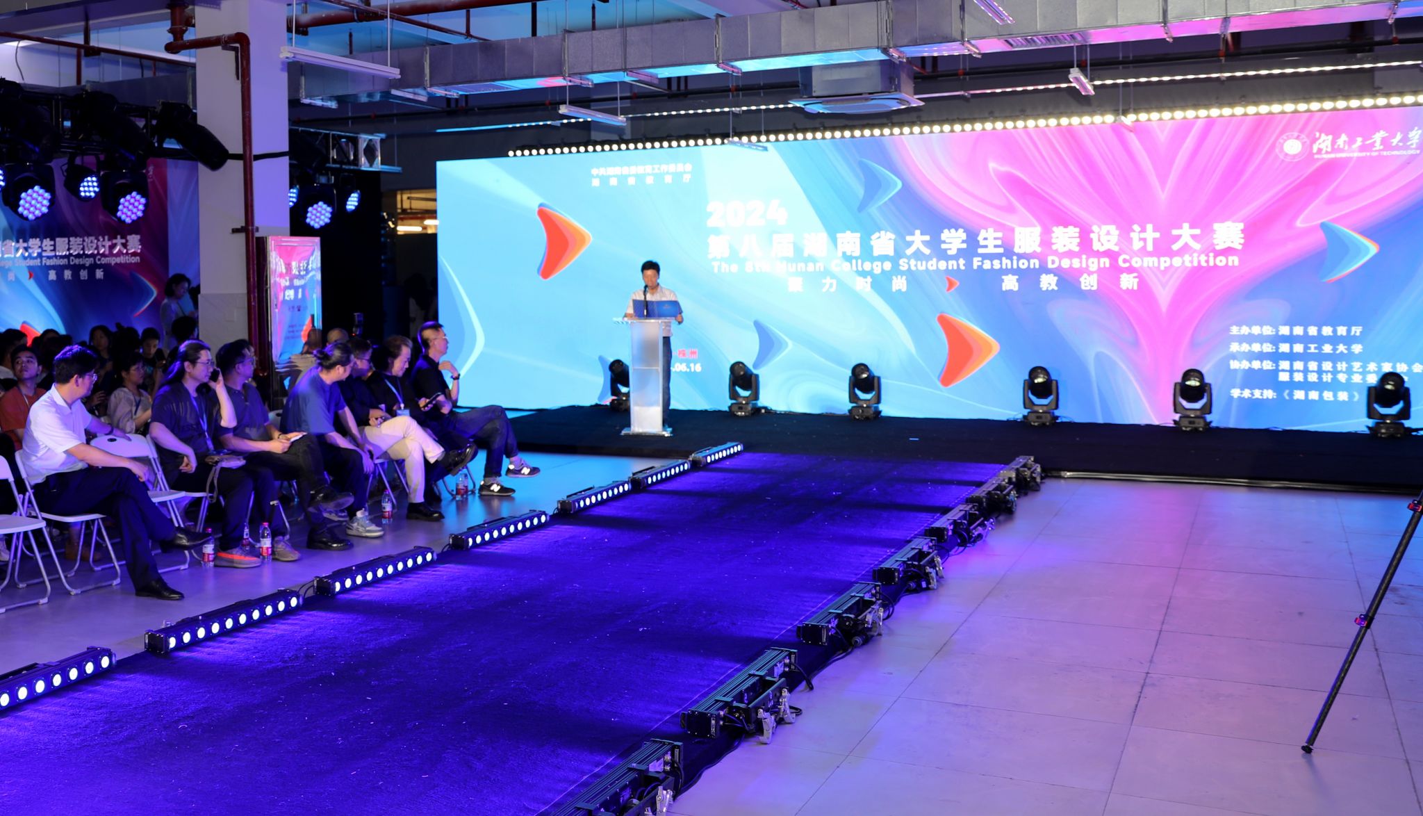 副校长范晓阳致辞,他表示,德赢作为一所扎根株洲、以包装教育为特色并在全国具有较大影响力的综合性大学,始终致力于培养适应新时代需求的创新型设计人才。包装设计艺术学院服装与服饰设计专业设立26年以来,为地方经济建设与行业发展做出了积极贡献。此次大赛的举办,不仅为设计新锐们提供了展示自我的平台,更期望通过此类活动推动产教融合、校企合作,以提升高校教育质量和人才培养水平。