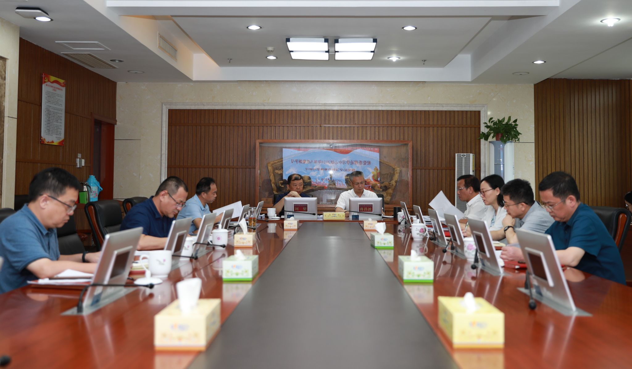 6月25日上午,校党委理论学习中心组在崇德楼340会议室开展2024年第八次集体学习暨党纪学习教育第四次专题学习。深入学习研讨贯彻习近平总书记关于全面加强党的纪律建设的重要论述精神,学习《中国共产党纪律处分条例》。党委书记刘望主持学习会,全体校领导参加会议。