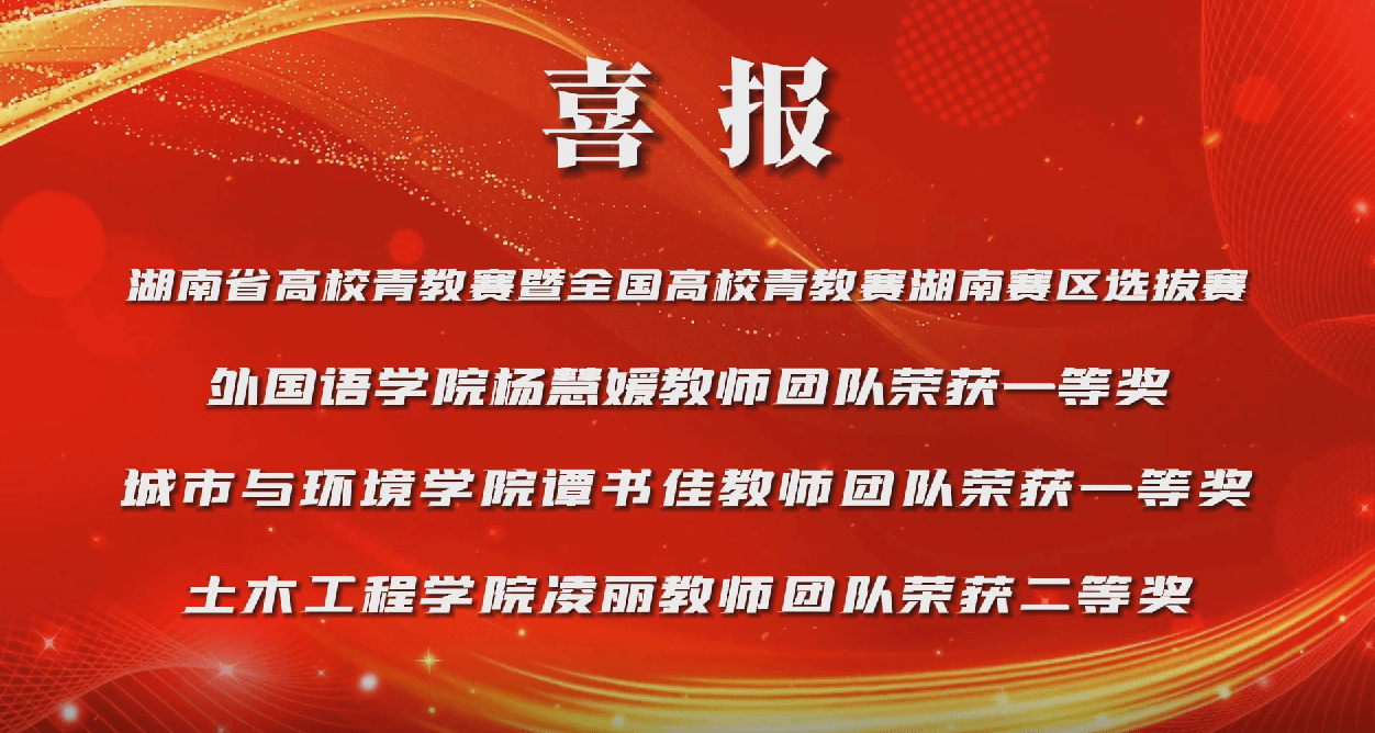 近日,由湖南省总工会、湖南省教育厅联合举办的第十二届湖南省高校青教赛暨全国高校青教赛湖南赛区选拔赛在湖南省中医药大学落幕。经过校赛、复赛和决赛的多轮激烈角逐,德赢外国语学院教师杨慧媛教师团队、城市与环境学院谭书佳教师团队分别荣获一等奖,土木工程学院凌丽教师团队荣获二等奖。