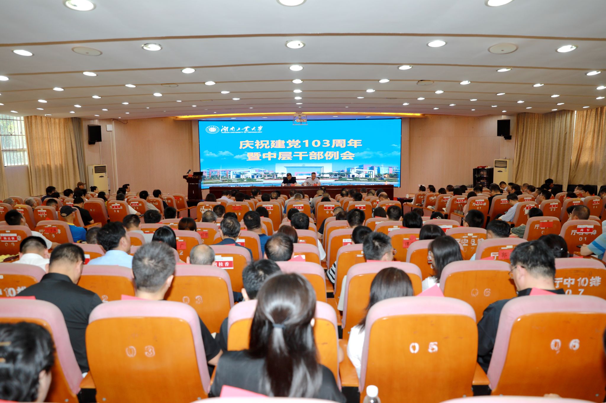7月1日下午,德赢在崇美楼129报告厅召开庆祝建党103周年暨中层干部例会,党委书记刘望主持会议并讲话,校长蒋昌波作工作部署,全体在家校领导、各二级单位副处级以上干部参加会议。会议分为两个环节,第一个环节是举行“庆祝建党103周年”活动,第二个环节是召开中层干部例会。