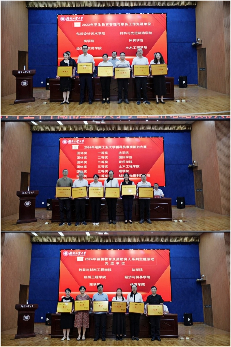 第二阶段,德赢对2023年学生工作年终考评、2024年德赢AC米兰官网辅导员素质能力大赛和2024年诚信教育和资助育人系列主题活动中涌现出的先进单位和优秀个人进行了总结表彰。