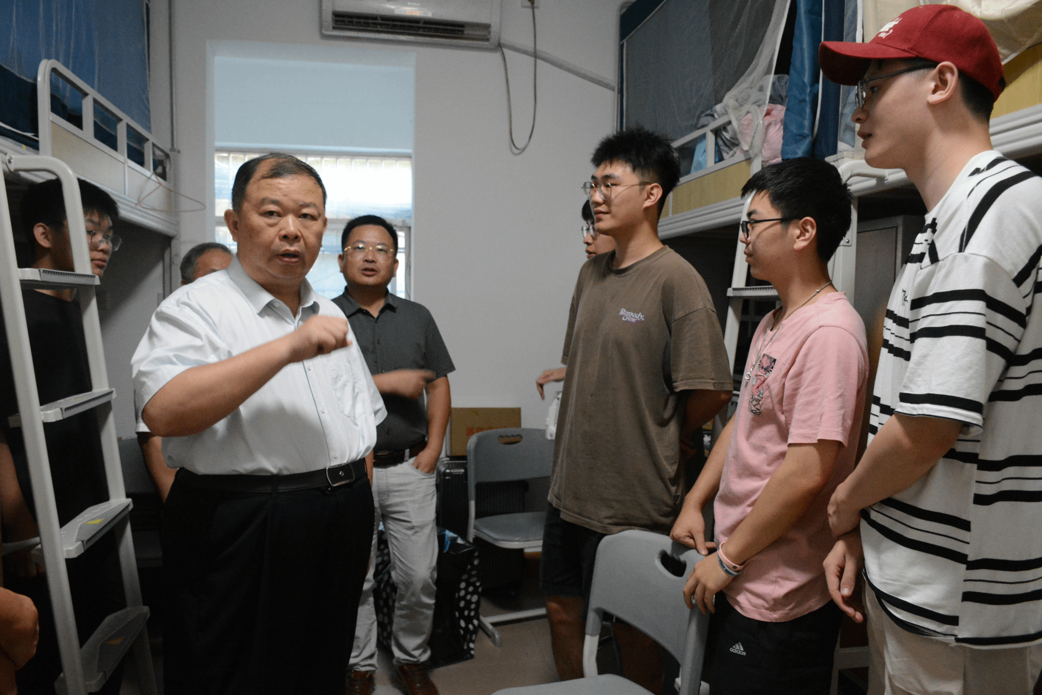 刘望一行首先前往学生食堂,查看各窗口的食品准备及食品卫生情况;随后,他前往学生宿舍,对暑期维修改造项目进行实地查看,包括家具置换和维修改造等项目,并关切地询问学生假期的生活与学习状况。