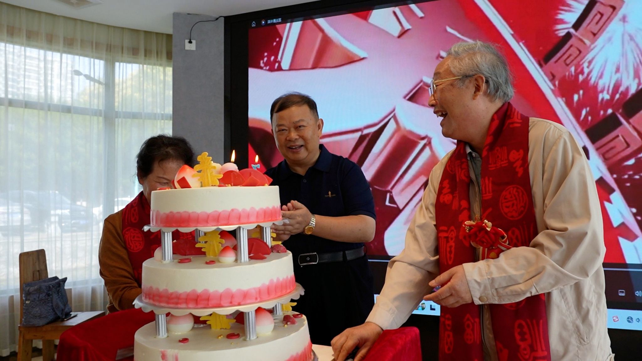 随着温馨的生日庆典开始,活动达到了高潮。刘望与寿星代表共同切分蛋糕,为119位寿星送上了生日祝福。现场洋溢着欢乐与温情,展现了学校对老同志们的深切关怀和崇高敬意。
