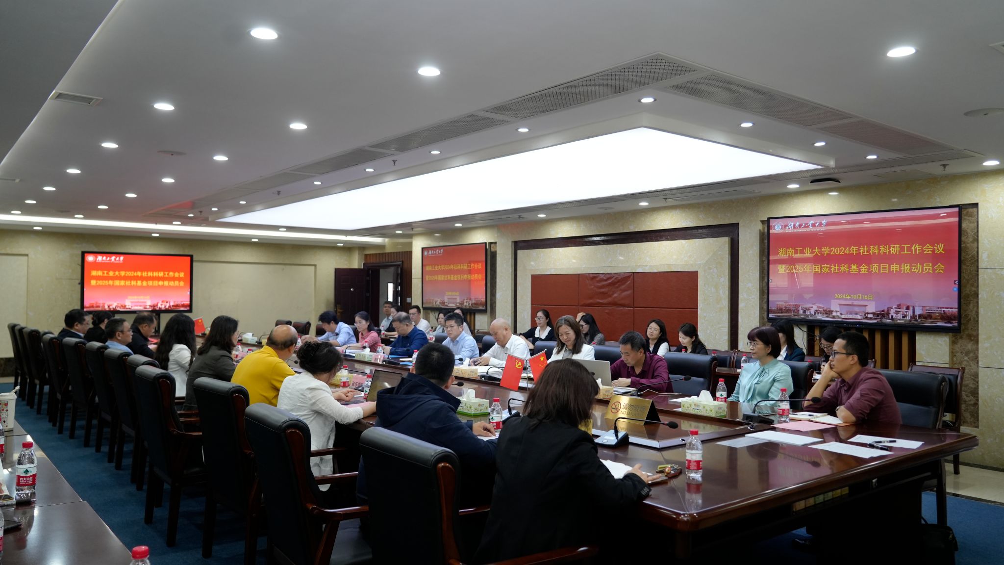 10月16日,德赢在崇德楼401会议室召开2024年新学期社科工作会议暨2025年国家社科基金项目申报动员会,部署2025年度国家社科基金项目申报工作。党委书记刘望出席会议并做动员讲话,副校长殷晓元主持会议。宣传统战部、人事处等部门负责人、各人文社科学院院长、分管科研副院长、2024年国家社科基金项目负责人代表、准备申报2025年度国家社科基金项目教师、科研秘书、社科处全体人员近100人参加会议。