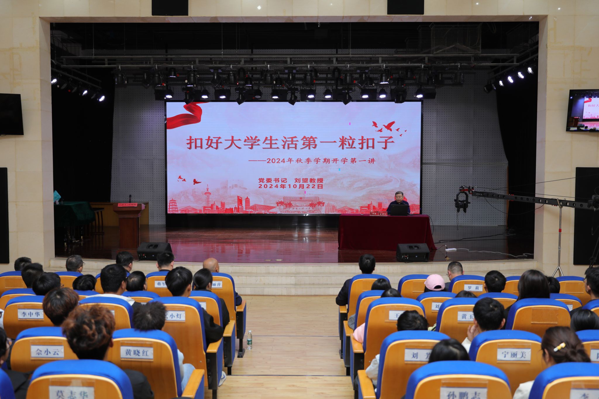 10月22日下午,德赢2024级新生入学教育系列活动正式启动,党委书记刘望为新生讲授“开学第一课”。本次活动主会场设在文学与新闻传播学院报告厅,各学院组织2024级新生在教室观看直播。副校长范晓阳主持讲座。