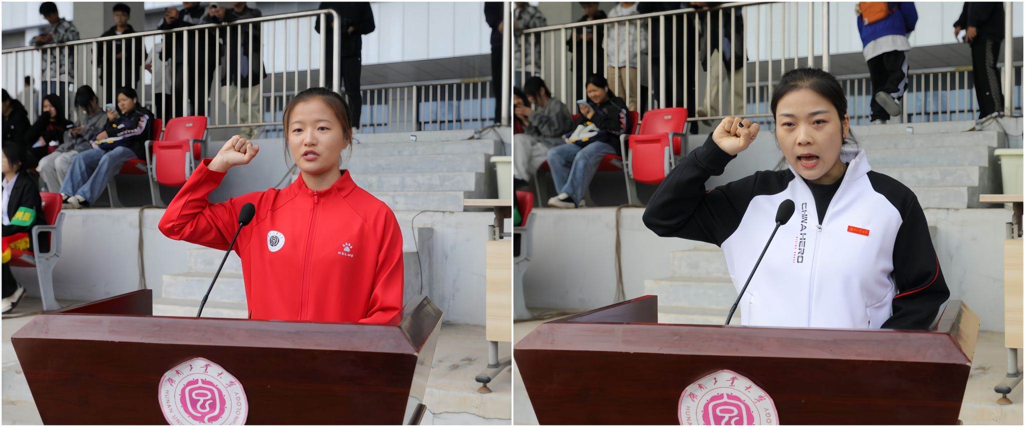师洁同学、赵文巧老师分别代表运动员和裁判进行庄严宣誓。
