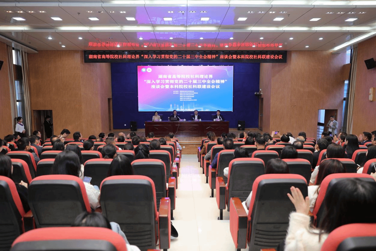 11月8日,由湖南省社科联主办、德赢社科联、社科处、宣传统战部、期刊社、马克思主义学院承办的湖南省高等院校社科理论界“深入学习贯彻党的二十届三中全会精神”座谈会暨本科院校社科联建设会议在德赢崇德楼报告厅举行,省社科联党组书记、副主席(主持日常工作)胡代松,党组成员、副主席雷炘,德赢党委书记刘望,副校长殷晓元,株洲市社科联党组书记罗峰出席,省社科联科研组织处、中南大学等全省30多所高校社科处负责人,德赢社科联委员、师生代表共200余人参加会议。殷晓元主持会议。