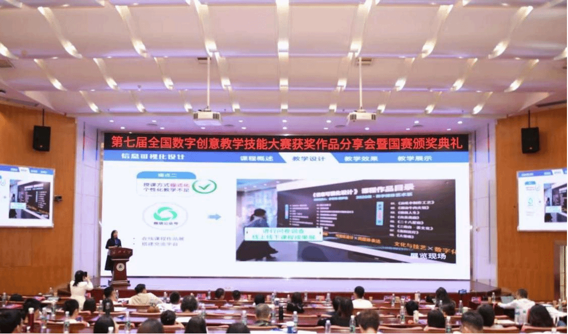 在颁奖典礼上,颜梦达代表其团队就参赛项目《数据驱动、文化引领、开放互动的学-训-创三段式混合式教学实践》进行了经验交流分享。据了解,全国数字创意教学技能大赛已被纳入中国高等教育学会《全国普通高校教师教学竞赛分析报告》及“全国普通高校教师教学发展指数”数据统计源,成为衡量高校教师教学发展生态的重要指标之一。