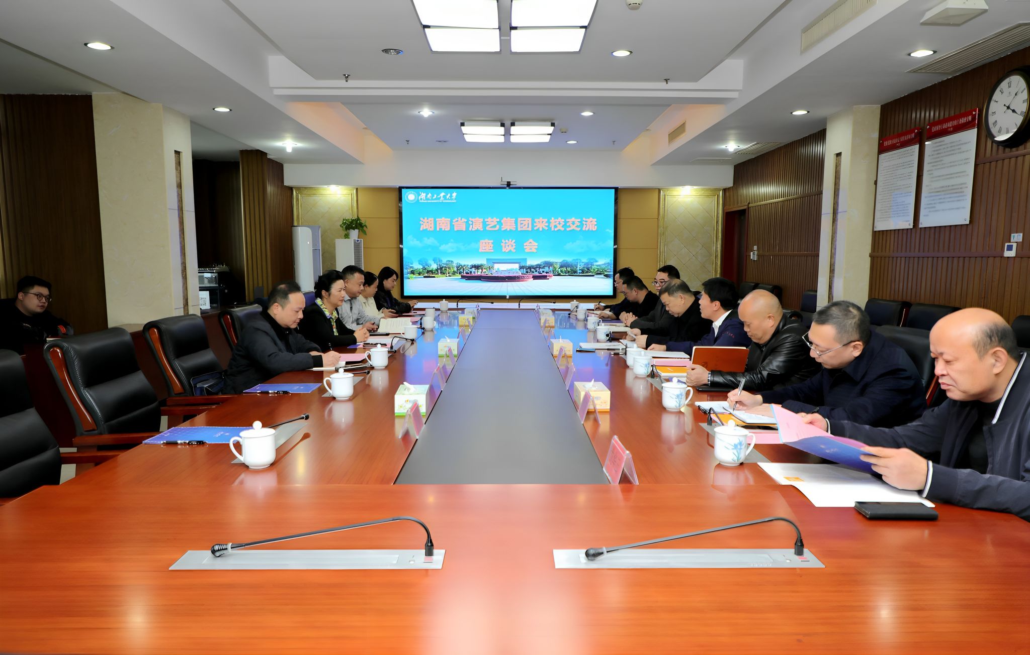 省演艺集团、省话剧院、湖南大剧院,德赢党政办公室、宣传统战部、学生工作部、团委、文学与新闻传播学院、音乐学院等相关负责人参加座谈。