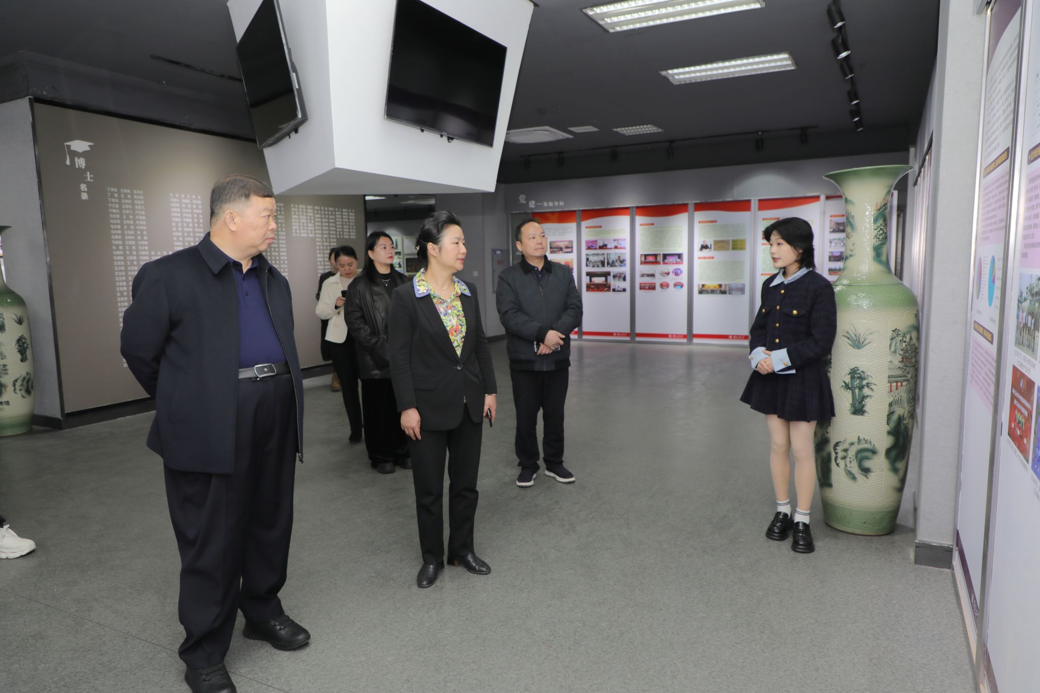 会后,刘望、范晓阳、纪委书记张克勤陪同张霞一行参观了校史馆、图书馆名人藏书室。