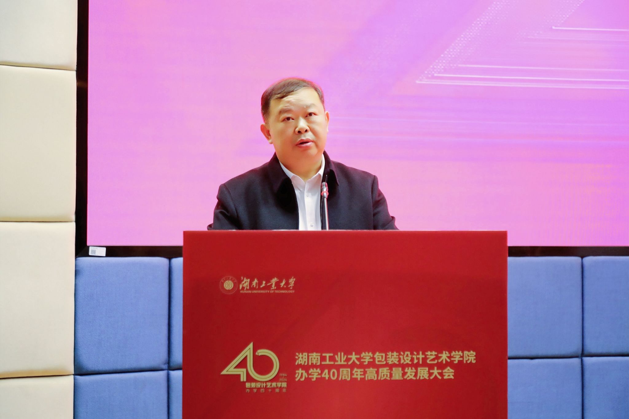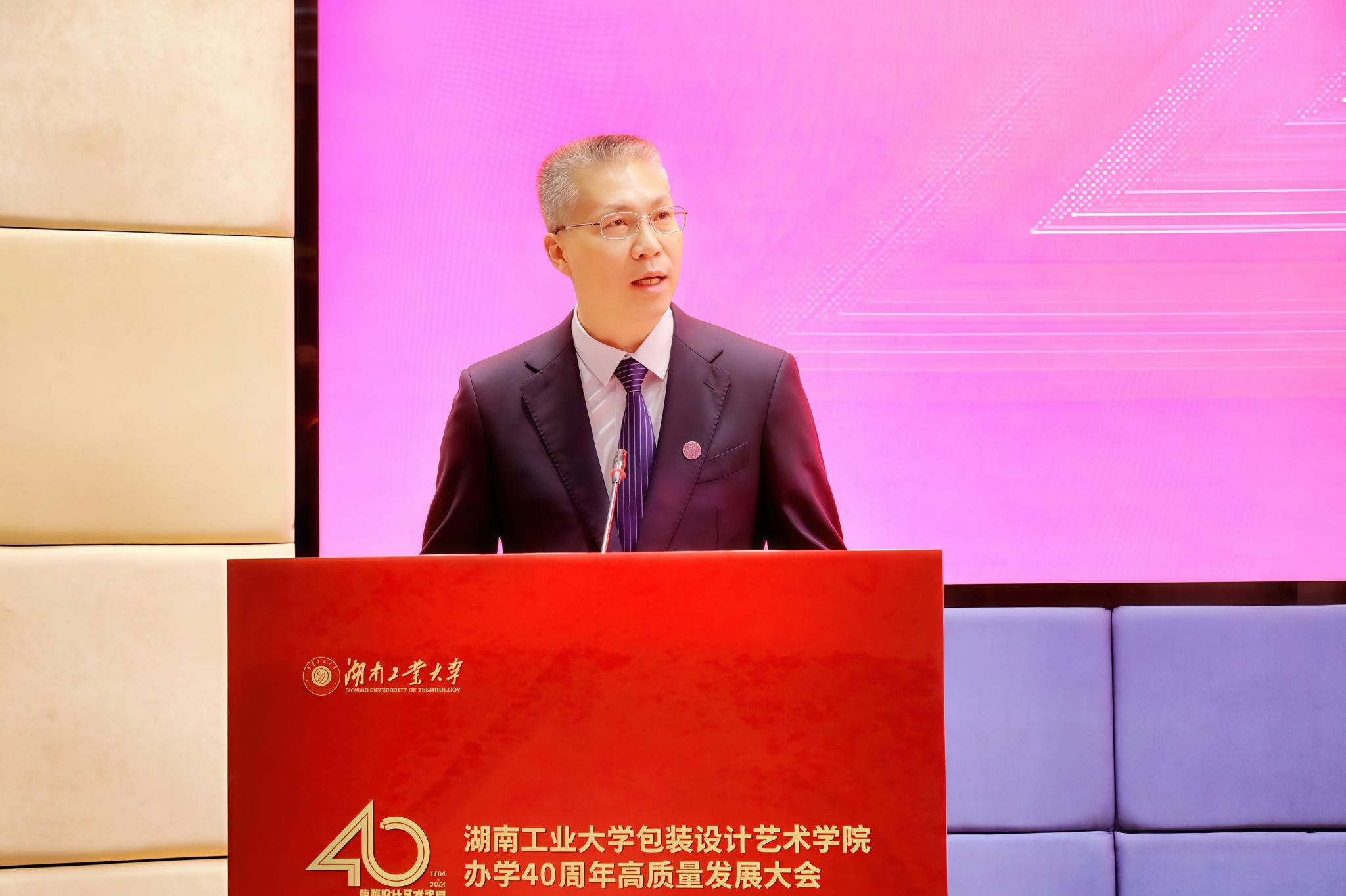 开幕式上,刘望在致辞中详细回顾了包装设计艺术学院四十年来的发展历程,并强调了包装设计学科在推动湖南省乃至全国包装产业发展中的重要作用。他指出,学院在技术创新、人才培养以及社会服务方面取得了显著成绩,特别是在推动产业升级和促进文化创意产业发展的过程中发挥了核心作用。他期望学院在未来能够进一步加强国际化发展,促进学科与产业的深度融合,实现战略目标。