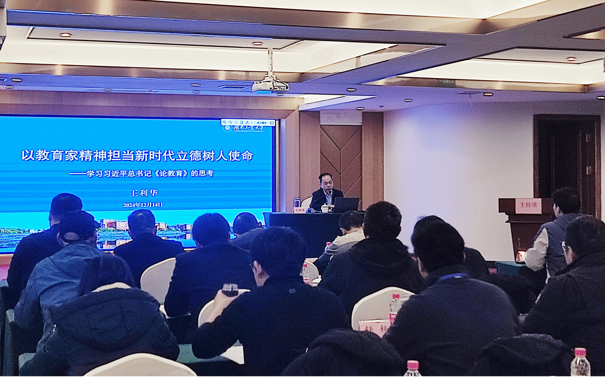 党委副书记王利华作了题为“以教育家精神担当新时代立德树人使命”的讲座,围绕新时代高等教育的使命、高校教师的要求和担当教育使命的思考展开精彩阐述,寄语全体学员做“讲政治、懂教育、有本领、勇改革、有情怀、严要求”的新时代高校教师,要以黄大年同志为榜样,将教育家精神内化为教书育人能力和躬耕教坛的亲身实践,践行使命担当,为加快建设教育强国不懈奋斗。