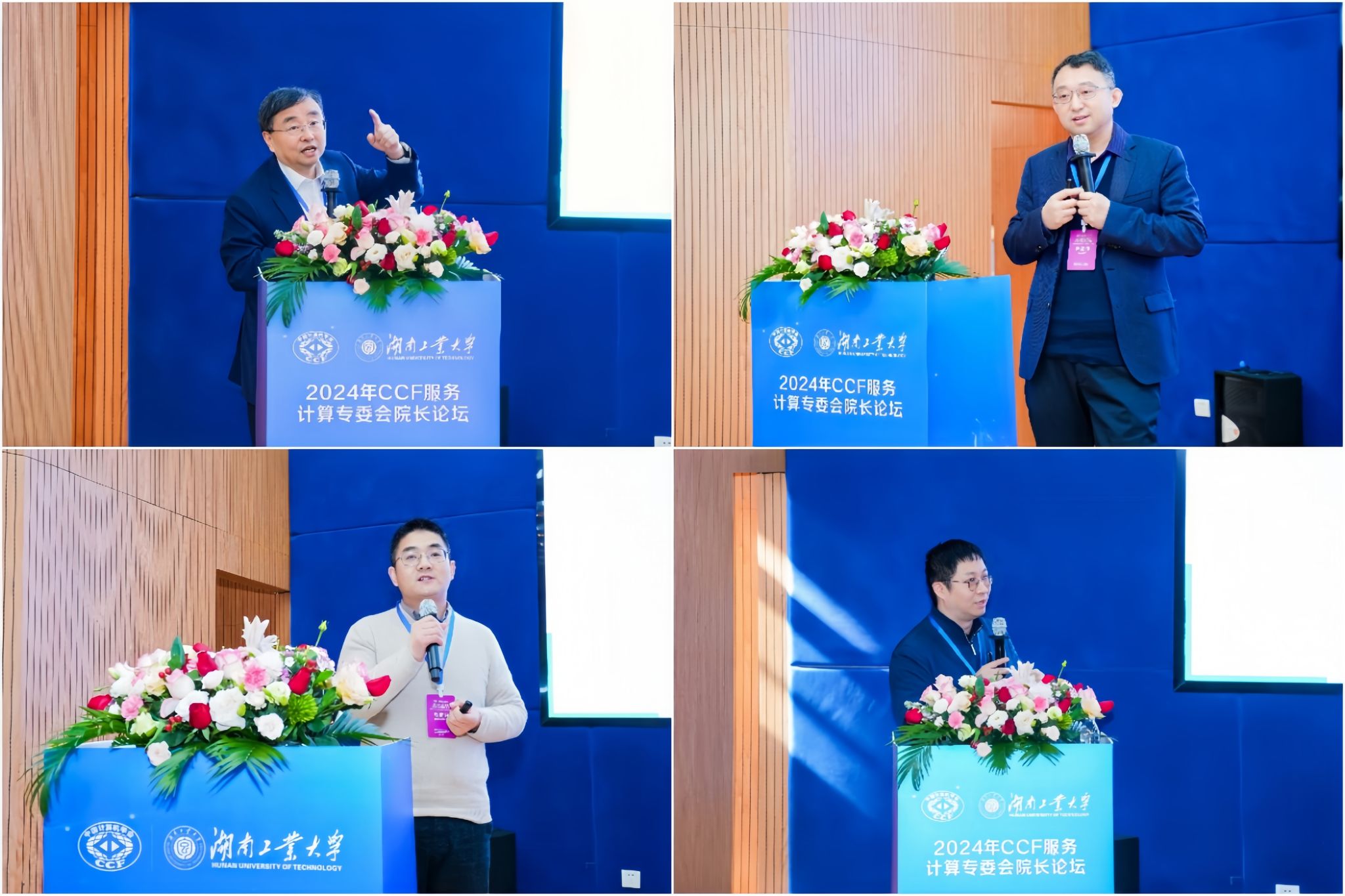 原哈尔滨工业大学(威海校区)校长徐晓飞,浙江大学软件学院院长尹建伟、国防科技大学计算机学院刘新旺,国家超级计算长沙中心副主任、湖南大学彭绍亮分别做了题为《AI赋能计算机与软件教育创新及学生能力培养》《以人促新、以新提质、以质扩量》《聚类分析的理论、方法及应用》《通用人工智能垂域大模型技术和应用》的特邀报告。