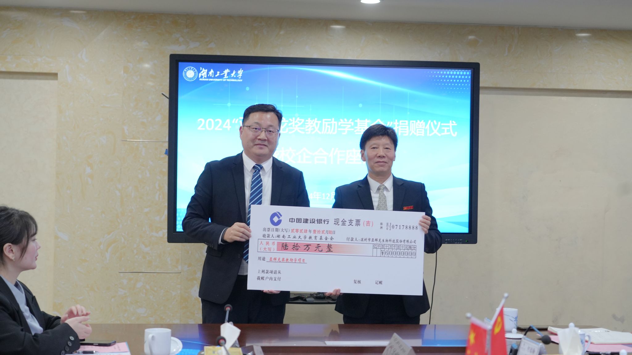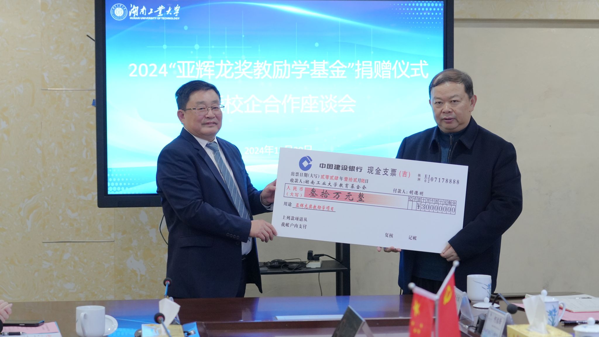 据了解,“亚辉龙奖教励学基金”是由校友胡德明创立的深圳市亚辉龙生物科技股份有限公司专项设立。在公司发展壮大过程中,胡德明校友始终传承工大精神,心系母校事业,坚守社会责任,公司在学校人才培养和“双一流”建设、新冠肺炎疫情防控、“校友回湘”等方面给予了长期的关心与支持,近年来通过捐赠办学设备、设立亚辉龙奖教励学基金等方式,累计向学校捐资捐物近800万元,充分彰显了工大校友的博爱胸怀和中国企业的担当作为。