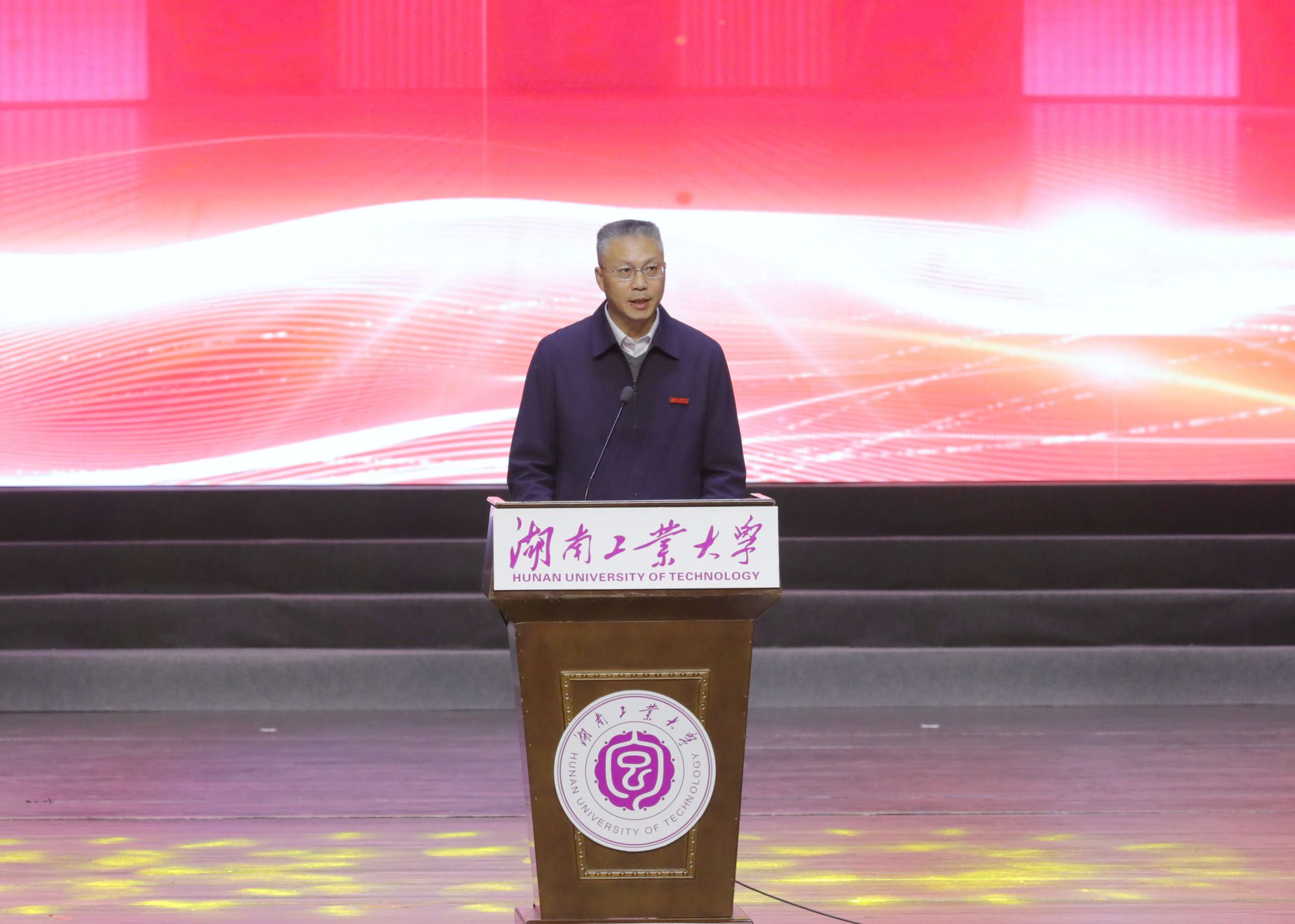 校长蒋昌波在晚会上致辞,他代表学校党委、行政、教育基金会向捐资奖教励学的深圳市亚辉龙生物科技股份有限公司及胡德明校友表示衷心感谢和崇高敬意,向获得表彰的老师和同学表示由衷祝贺。他强调,胡德明校友和亚辉龙公司长期以来对学校教育事业的关心支持,不仅传递了价值和精神,更是彰显了引领作用,这必将激励更多教师躬耕教坛、潜心育人,必将鼓舞更多学生励志圆梦、奋发成才,必将带动更多校友情牵母校、共同发展。他殷切希望双方在技术研发、成果转化、人才培养、社会服务等领域深入开展战略合作,共同为建设教育科技人才强国,服务中部地区崛起战略,加快实现“三高四新”美好蓝图,贡献智慧,展现担当。衷心希望广大老师大力弘扬教育家精神,牢记为党育人、为国育才初心使命,争当学生为学、为事、为人的大先生,争当“四有”好老师;衷心希望广大学生心怀感恩,珍惜荣誉,争做有理想、敢担当、能吃苦、肯奋斗的新时代好青年,争做堪当强国建设、民族复兴大任的栋梁之才。