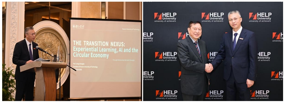 4月26日,蒋昌波与精英大学校长陈德鸿教授(Professor Datuk Dr. Paul Chan)代表两校正式签署《合作备忘录》。根据协议,双方将整合优势学科资源,在人才培养、师资交流、科研创新等领域开展深度合作。新成立的“精英-工大未来科技与设计学院”将聚焦人工智能、数字技术、创新设计等前沿领域,致力于培养具有国际视野的高端复合型人才,服务区域经济发展与全球科技创新需求。
