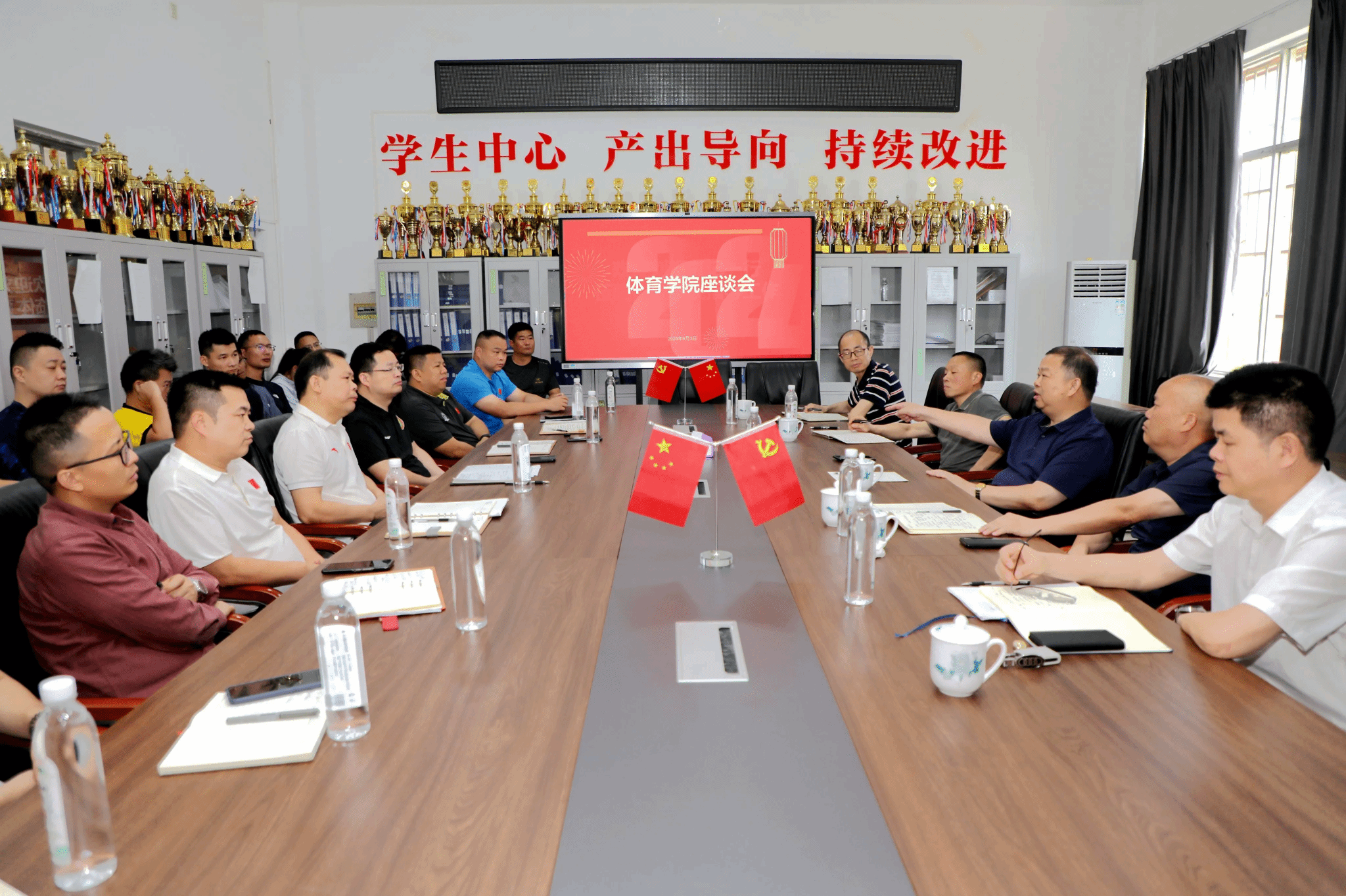 6月3日下午,党委书记刘望到体育学院开展工作调研并召开座谈会。党政办、宣传统战部、财务处、教务处负责人随同调研,体育学院全体院领导和各代表队教练参加调研座谈会。