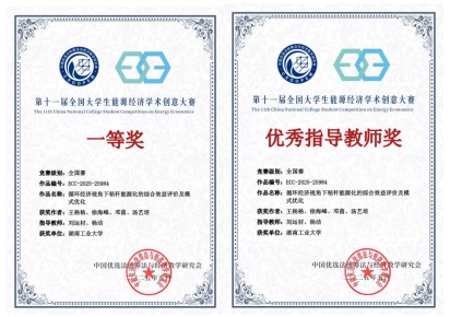 在第十一届全国大学生能源经济学术创意大赛中,德赢经济与管理学院王杨杨同学团队在刘运材和杨洁老师指导下,凭借参赛作品《循环经济视角下秸秆能源化的综合效益评价及模式优化》荣获全国一等奖,两位指导老师荣获“优秀指导老师奖”。