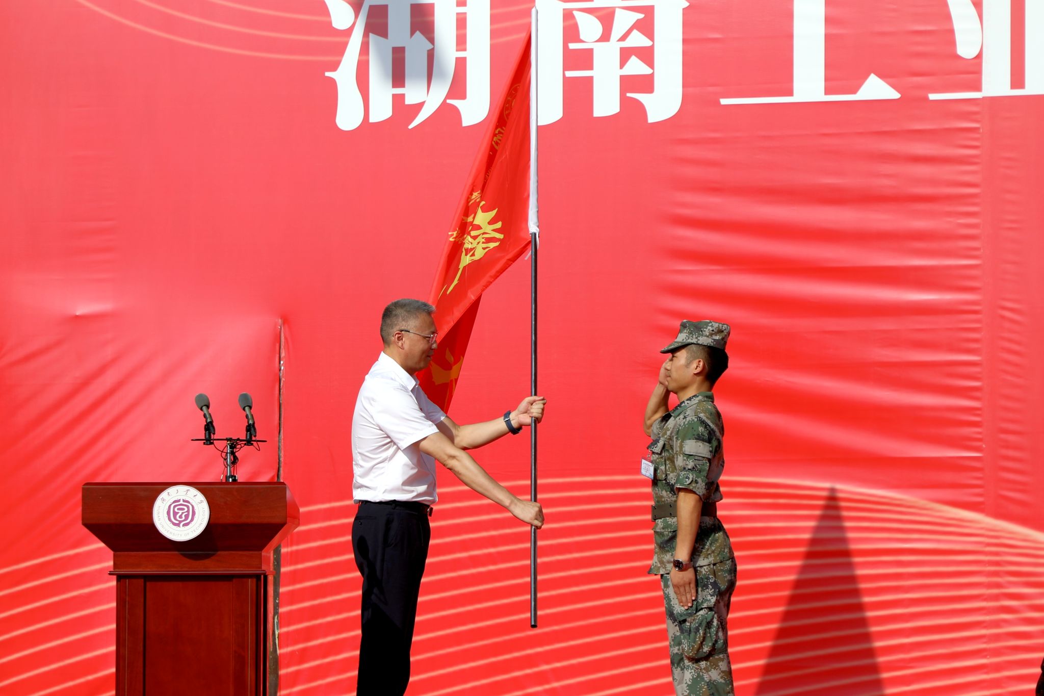 最后,蒋昌波教授为各营授旗,标志着2025级新生军训正式启动。