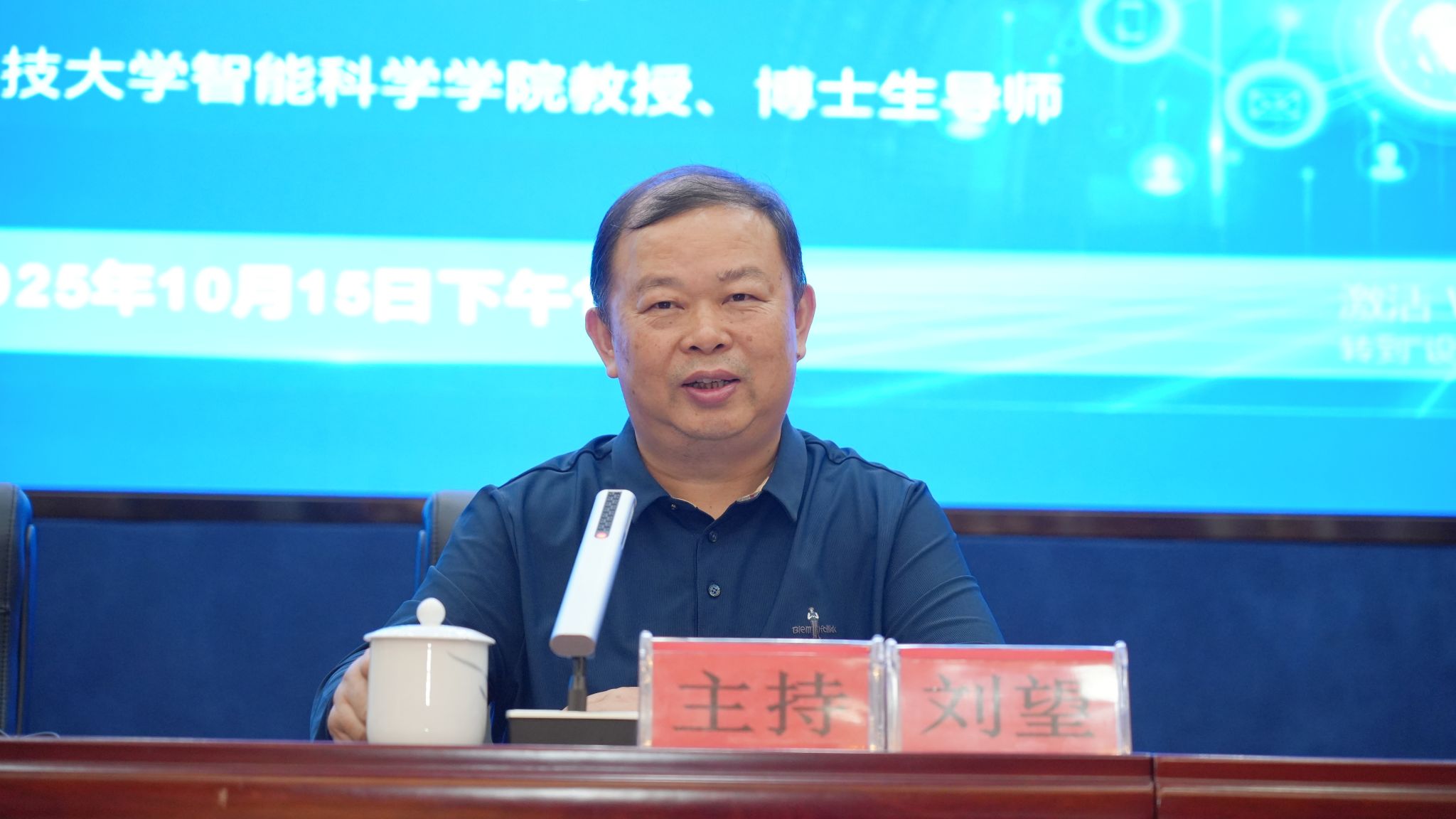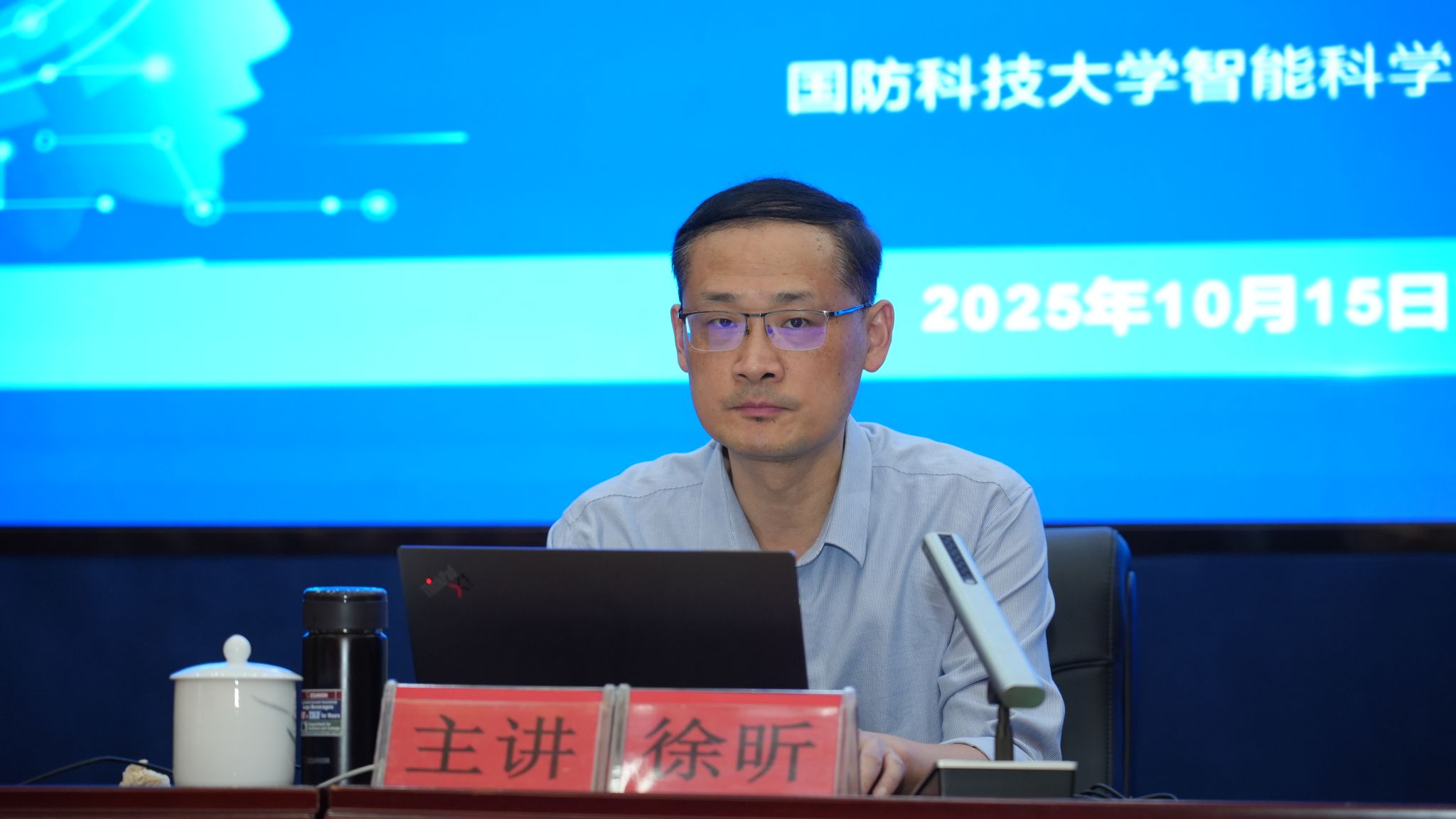 10月15日下午,校党委理论学习中心组集体(扩大)学习暨第9期渌江大讲堂在崇德楼报告厅开讲,专题学习习近平总书记关于推动人工智能健康有序发展的重要论述。国防科技大学智能科学学院徐昕教授应邀为与会人员作相关辅导。党委书记刘望主持会议并讲话。