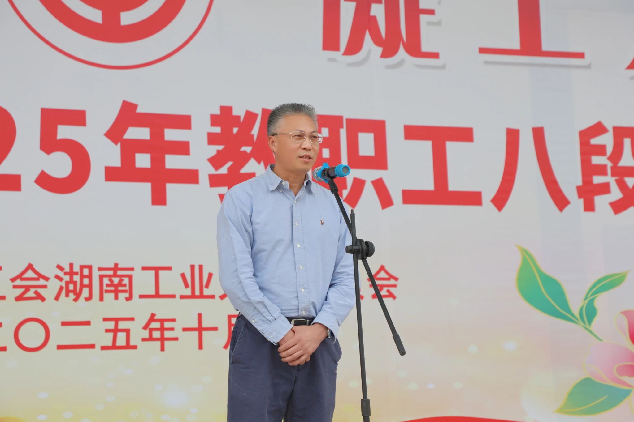 开幕式现场参赛教职工精神抖擞、队列整齐。校长蒋昌波宣布比赛开幕,副校长李若梅致开幕词。李若梅在致辞中指出,八段锦作为中华优秀传统养生文化的瑰宝,兼具健身性与文化性,举办本次比赛既是学校关爱教职工身心健康、搭建文体交流平台的重要举措,也是凝聚全校力量、激发干事创业热情的生动实践。她希望全体参赛教职工以赛促练、以赛会友,在舒展流畅的动作中感受传统文化魅力,在团结协作的比拼中增强集体荣誉感,将赛场上的拼搏精神转化为推动学校高质量发展的强大动力。