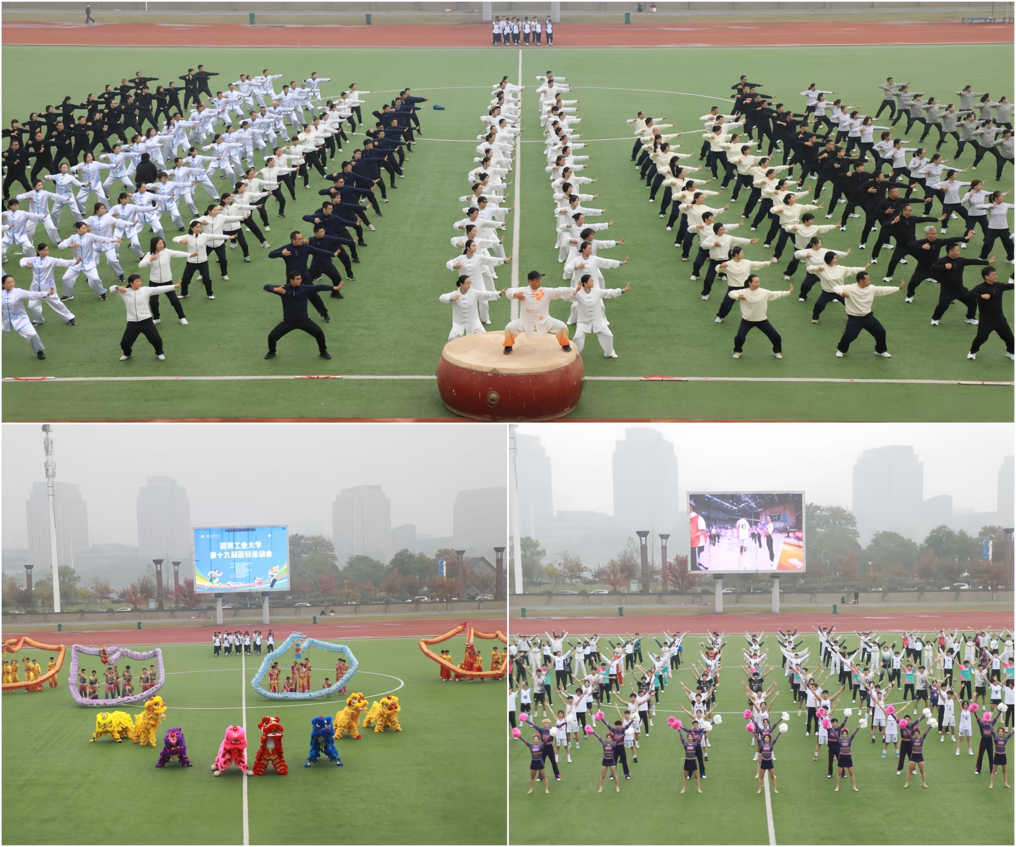 开幕式上节目表演精彩纷呈。从教职工八段锦的儒雅从容到学生们舞龙舞狮、运动串烧、团体操的热血激昂,从传统文化的传承到竞技精神的彰显,以多元的形式、深厚的内涵,为整场盛会奠定了“团结、奋进、活力”的基调。这场表演不仅是一次艺体展示,更是湖工大“五育并举”教育成果的生动缩影,让全体师生在感受美的同时,更凝聚起砥砺前行的力量,共同迎接运动会的精彩角逐。