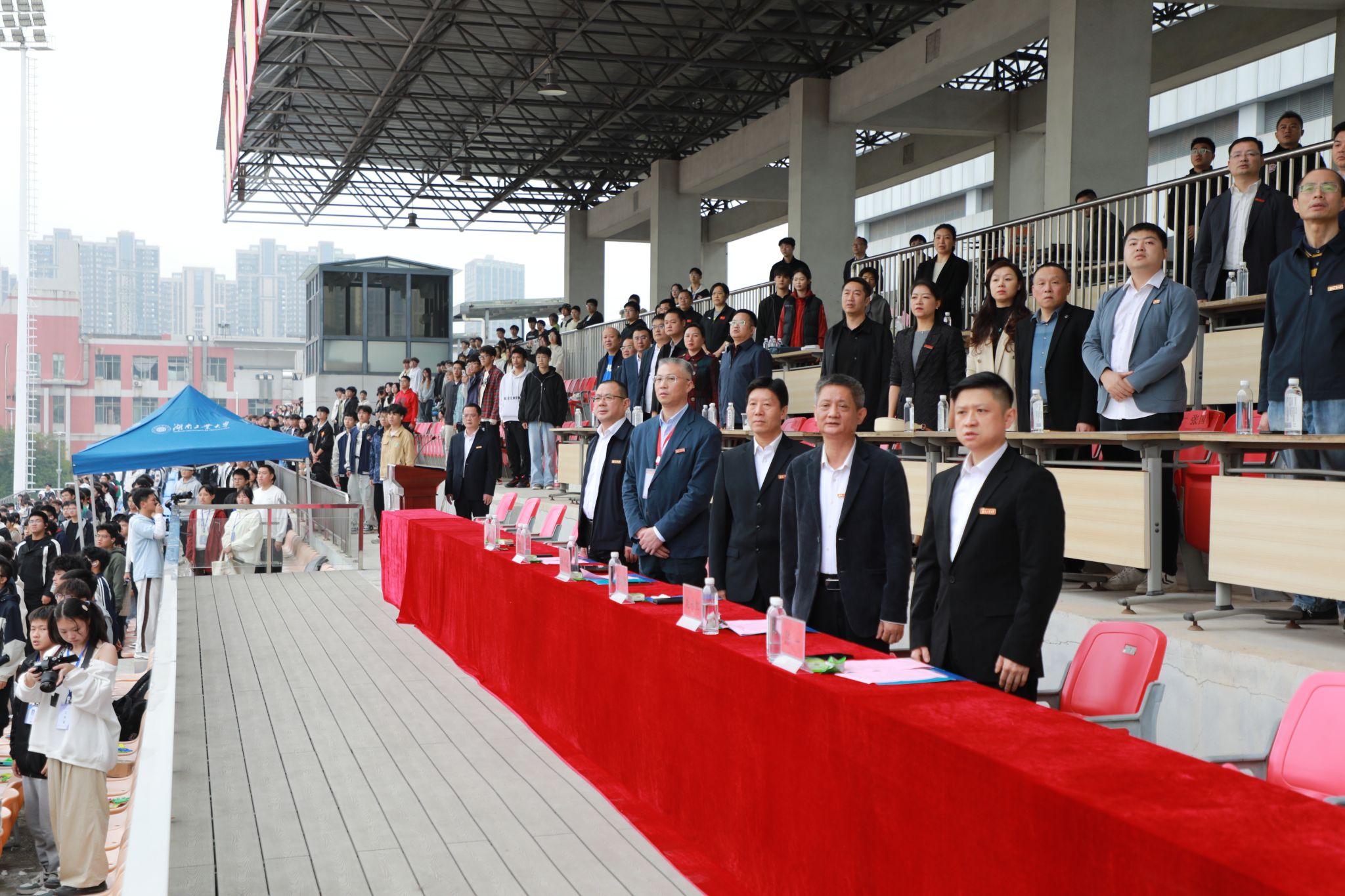 开幕式入场整齐划一、铿锵有力。国旗队迈着整齐的步伐率先入场,鲜红的五星红旗在朝阳下熠熠生辉;紧随其后的校徽、仪仗队、彩旗队方阵庄重整齐,彰显着湖工大的精神底色;裁判员以及各二级学院代表队身着特色服装,手持创意道具,以昂扬的姿态依次走过主席台,“智能制造、勇攀高峰”“艺彩飞扬、筑梦工大”等嘹亮口号响彻云霄,展现出不同学科专业学子的独特活力与团队凝聚力。