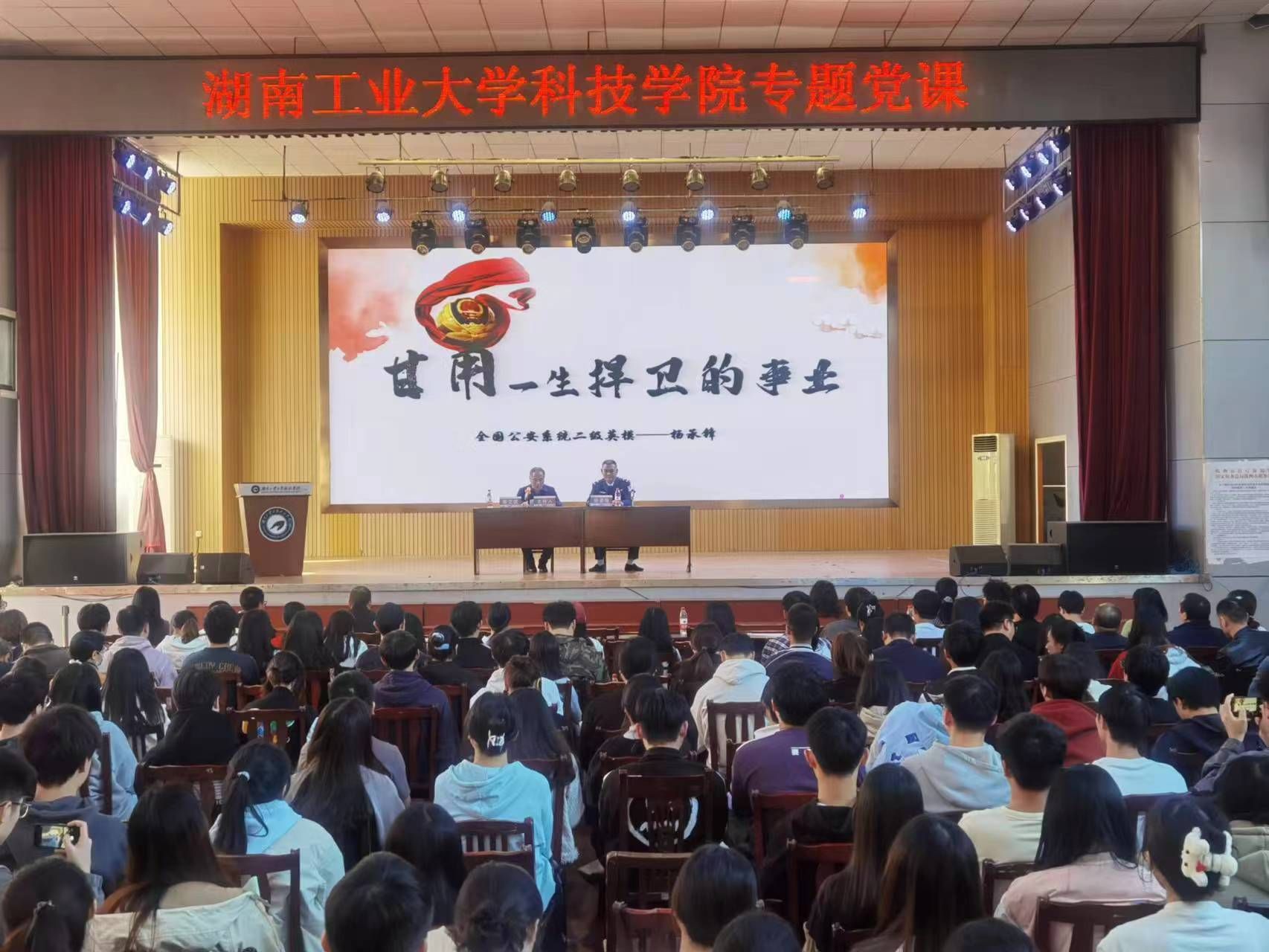 为进一步强化师生党员党性教育,把好校园安全关,近日,科技学院邀请原湖南省株洲市公安局刑侦支队政委、全国公安系统二级英模杨承锋作《甘用一生捍卫的事业》专题讲座。全院师生党员入党积极分子代表约300余人聆听了讲座。