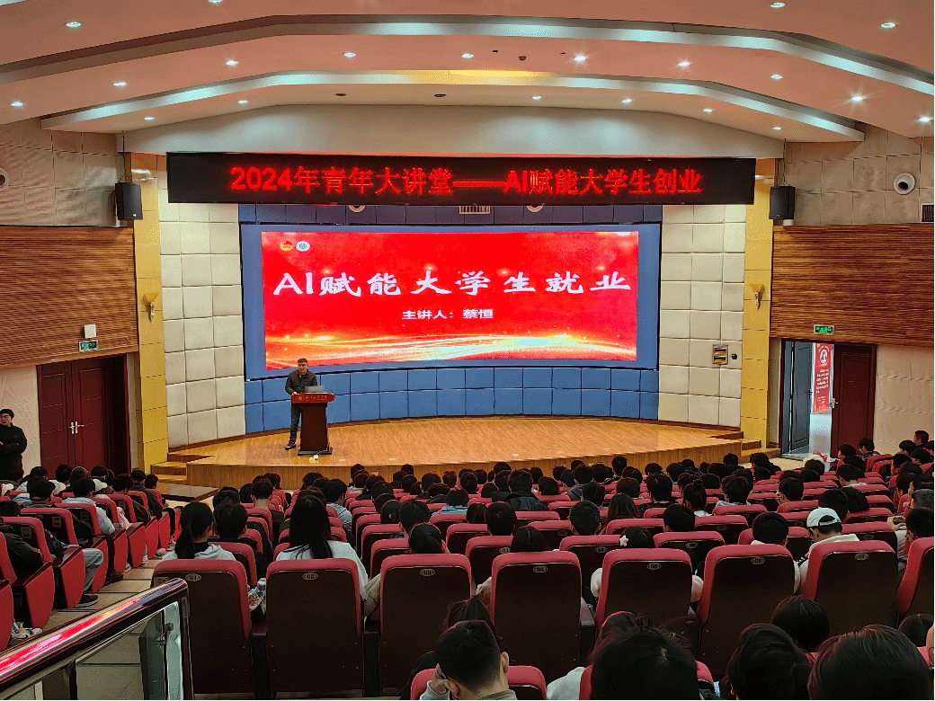近日,清华大学计算机软件硕士、清华大学经济管理学院MBA、清华硬科技俱乐部创始人之一的蔡恒,应邀走进“青年大讲堂”,作题为“AI赋能大学生就业”的专题讲座。本次讲座由校团委主办,计算机学院承办,旨在帮助学生们深入了解AI技术的潜力及其对就业市场的影响,进而提升他们的就业能力。讲座吸引了全校350余名师生参与。