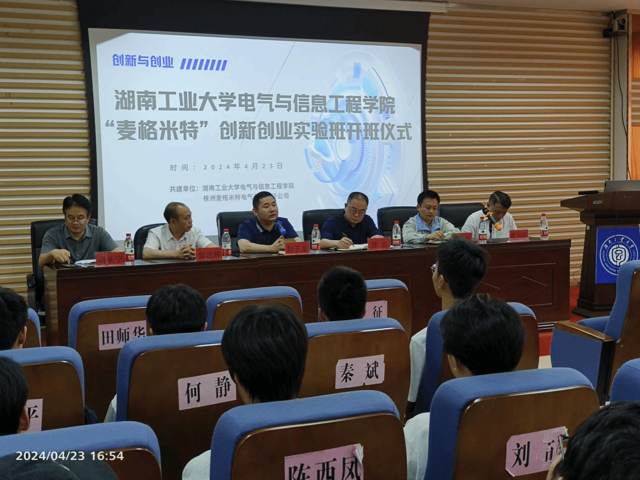 近日,德赢“麦格米特”创新创业实验班开班仪式在崇慧楼317举行,电气与信息工程学院、创新创业学院、株洲麦格米特电气有限公司相关负责人及该班40名同学参加开班仪式,共同见证“麦格米特”创新创业实验班的授牌仪式。
