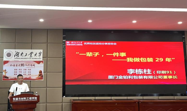 李栋柱校友发表了题为“一辈子,一件事——我做包装29年”的分享报告。他详细讲述了自己如何赚取第一桶金以及在包装行业深耕细作的历程,并鼓励学子们要选择热爱的事业并持之以恒地追求,不畏艰难,勇于挑战。同时,他也强调了实干精神的重要性,号召大家以只争朝夕、时不我待的态度不断进取。