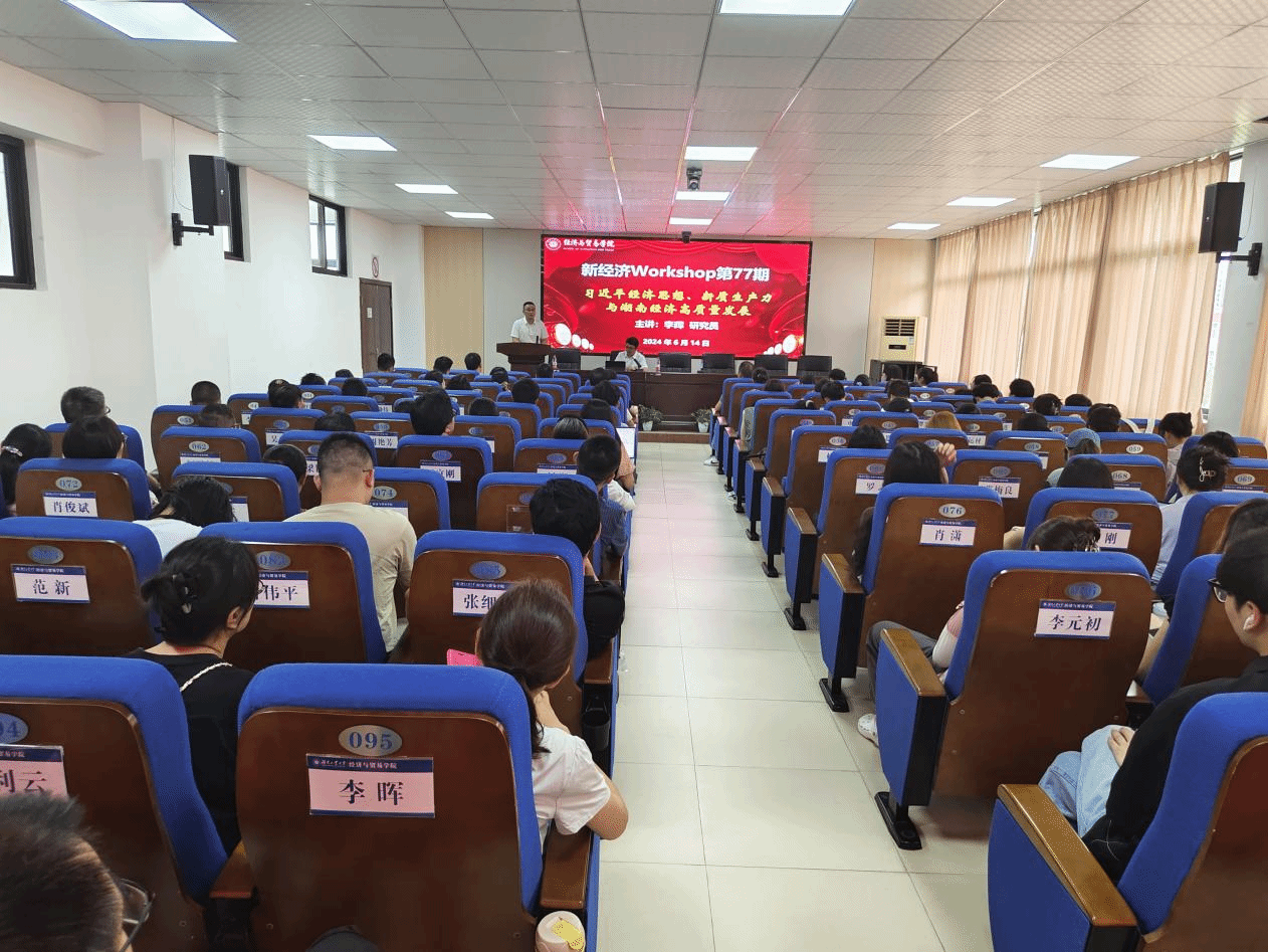 近日,经济与贸易学院邀请湖南省社会科学院经济研究所所长李晖作题为“习近平经济思想、新质生产力与湖南经济高质量发展”专题讲座。本次讲座作为经济与贸易学院新经济Workshop第77期,吸引了学院领导及百余名师生共同聆听。