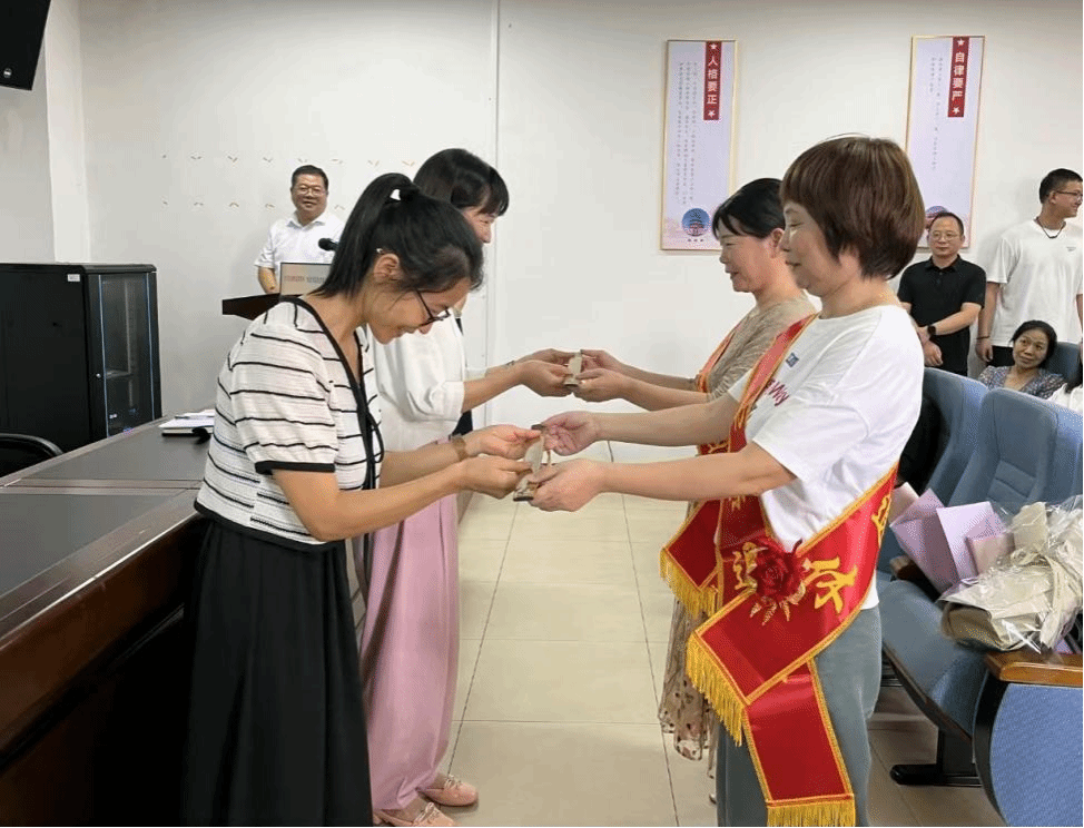 随后,新入职的黎文华和刘玲两位博士相继登台,进行简短而充满激情的自我介绍。她们不仅表达对教育事业的无限热忱,也对即将开始的教师生涯做出坚定的承诺。在这温馨而又庄重的时刻,新入职教师向退休教师献上了鲜花,以此表达他们对前辈的敬意;而退休教师则回赠了象征着教育事业传承的“教鞭”,这一举动不仅传递了教育的火炬,也寄托了对新一代教师的期望和祝福。