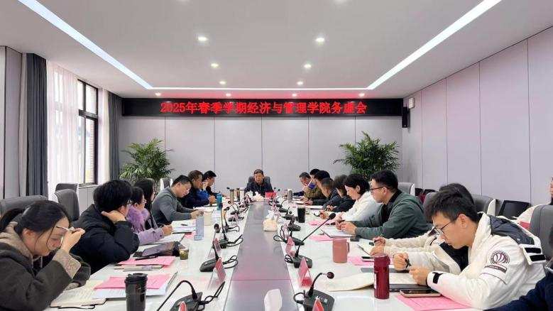 为深入贯彻落实湖南省委“两优”方案及学校2025年春季学期务虚会精神,奋力推进学院高质量发展。近日,经济与管理学院在崇信楼南楼413会议室召开2025年春季学期务虚会,学校党委书记刘望出席并讲话,学院全体院领导、中层干部参加,围绕“凝心聚力 顺势作为 开创学院高质量发展新局面”主题展开深入研讨。