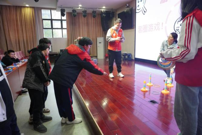 为了让孩子们在轻松的氛围中感受到关爱,志愿者们还精心组织了套圈游戏。志愿者们准备好套圈道具,耐心引导孩子们找准目标,把握力度,轻轻投掷。每当套圈准确地落在目标上,现场就响起阵阵掌声和欢呼声,孩子们的脸上洋溢着幸福与自豪。套圈游戏结束后,“你画我猜”活动随即展开。孩子们分组比赛,小组成员之间配合默契,凭借丰富的想象力,在白纸上勾勒出各种生动有趣的图案。现场气氛热烈,充满欢声笑语,每一次互动都加深了孩子们与志愿者之间的情谊。