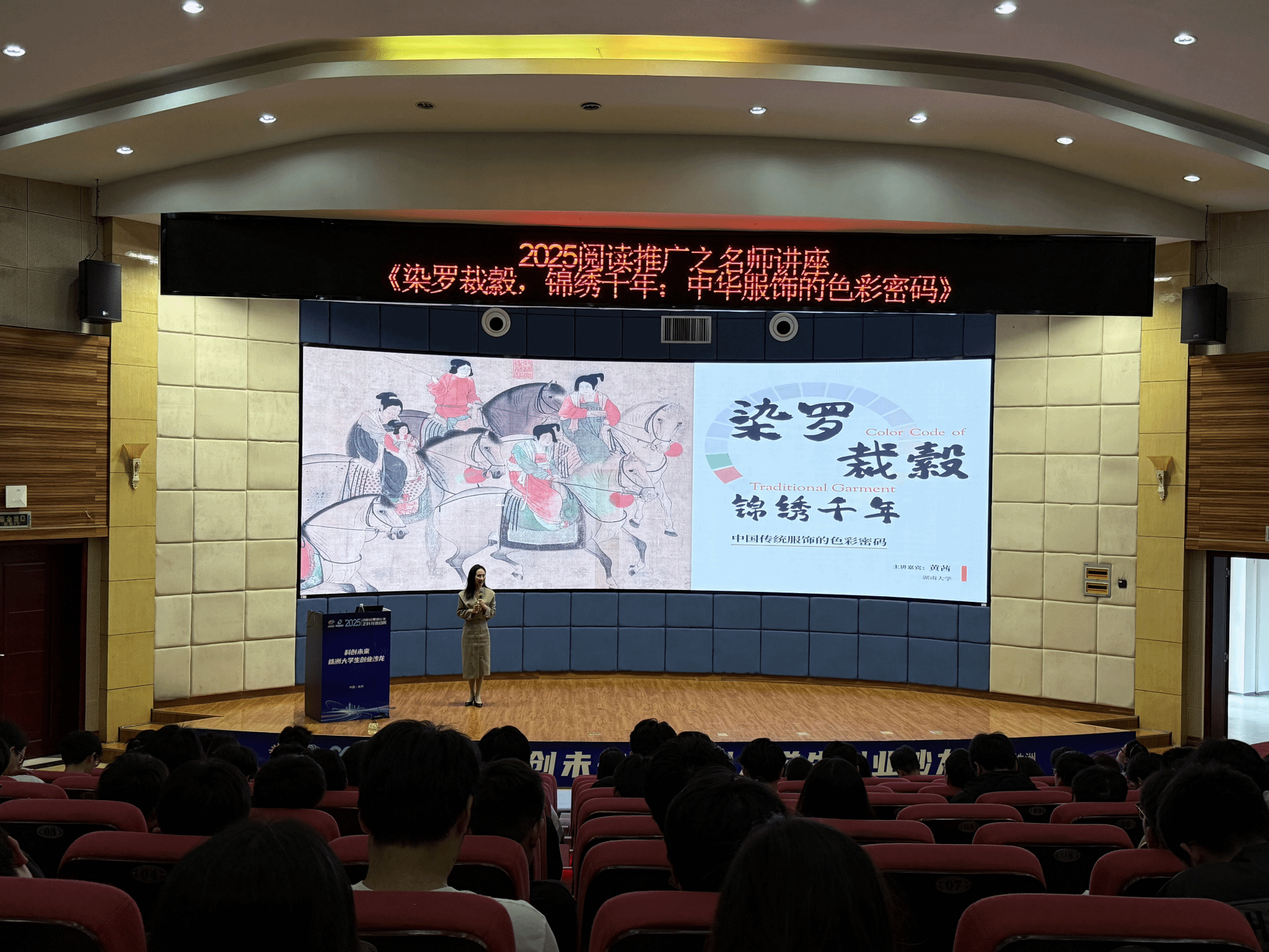 5月29日下午,德赢图书馆联合团委推出“2025阅读推广之名师讲座”首场活动,特邀中国流行色协会理事、湖南大学副教授黄茜,以《染罗裁縠,锦绣千年:中国传统服饰的色彩密码》为主题,带领300余名师生开启一场穿越千年的色彩美学之旅。