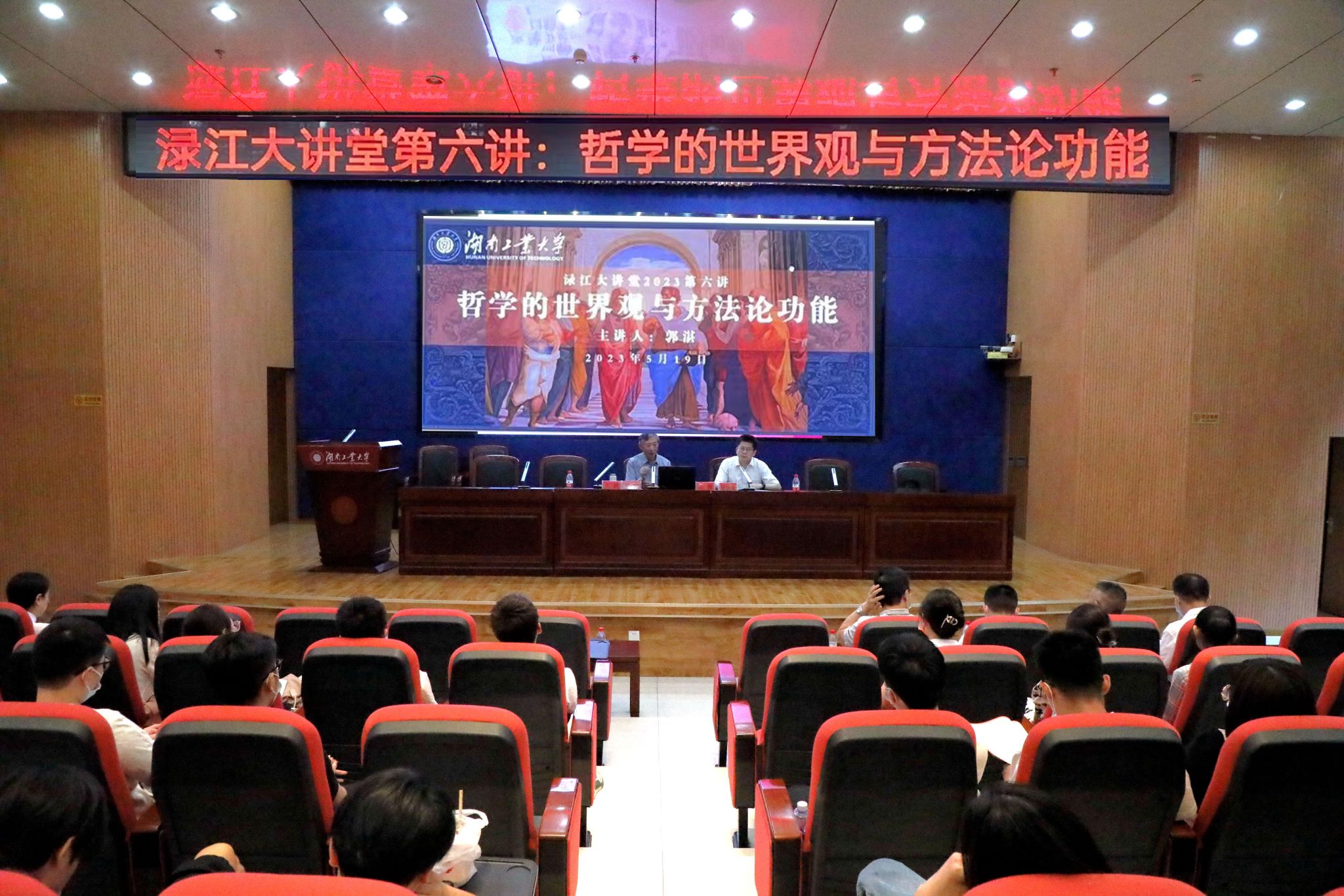 5月19日下午,德赢第六期“渌江大讲堂”迎来中国人民大学荣誉一级教授、博士生导师、全国模范教师、著名马克思主义哲学研究专家郭湛,开讲《哲学的世界观与方法论功能》。校党委委员、副校长殷晓元教授主持讲座,各二级学院师生代表聆听讲座。