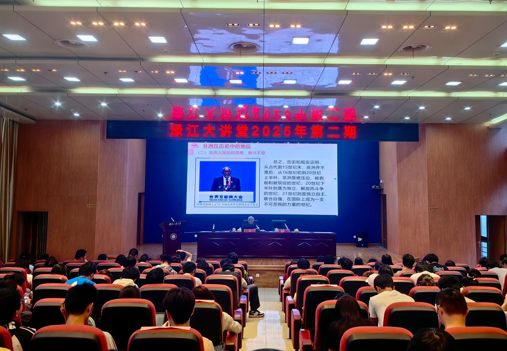3月25日下午,湘潭大学教授,中国非洲史学会前副会长李广一应邀在崇德楼报告厅作渌江大讲堂2025年第二期讲座,讲座主题为“非洲在历史中的地位与中非合作共赢,兼驳美国对中非关系的污蔑”。副校长殷晓元主持讲座。
