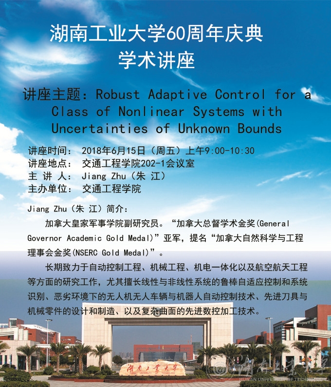 【学术讲座-《Robust Adaptive Control for a Class of Nonlinear Systems with Uncertainties of Unknown Bounds》】