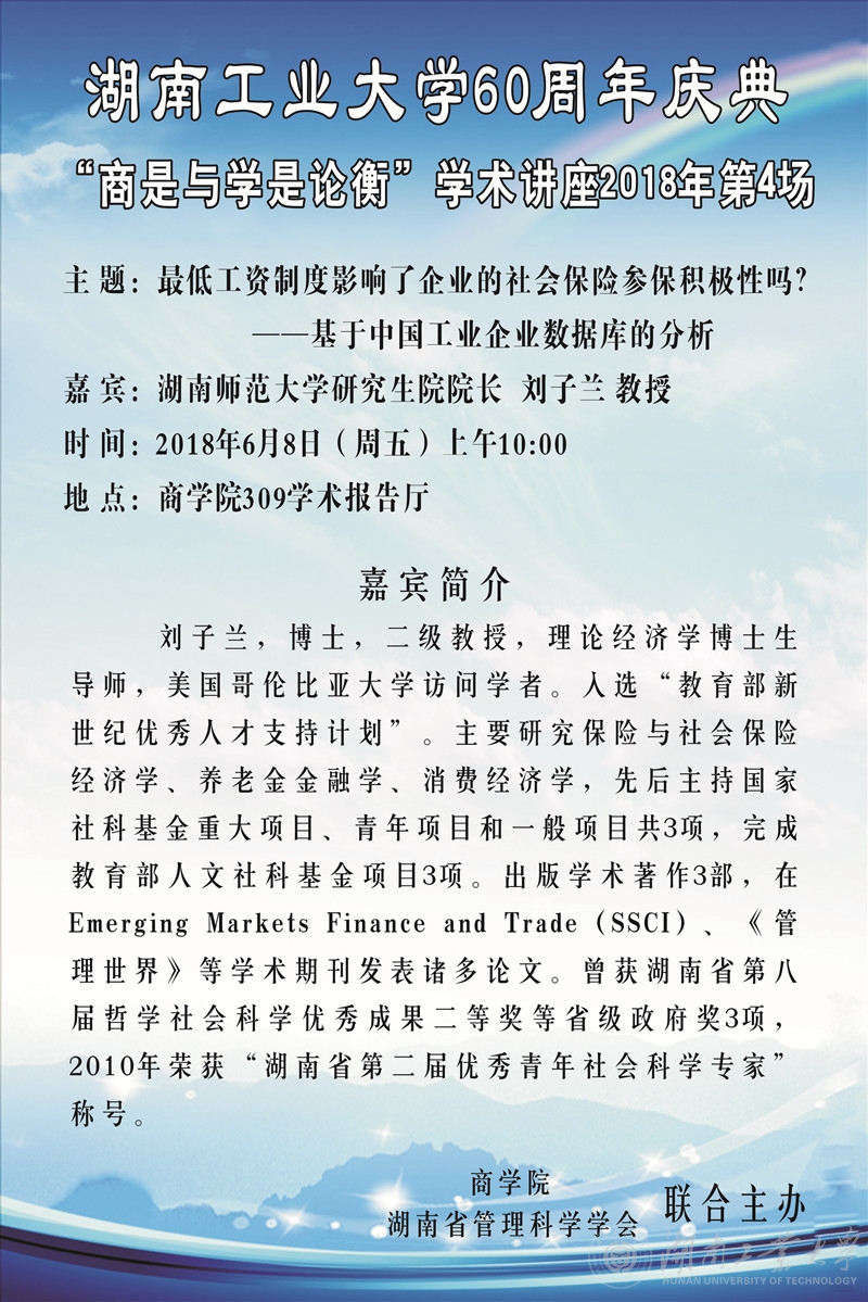 【德赢AC米兰官网办学六十周年庆典学术讲座---《最低工资制度影响了企业的社会保险参保积极性吗?——基于中国工业企业数据库的分析》】
