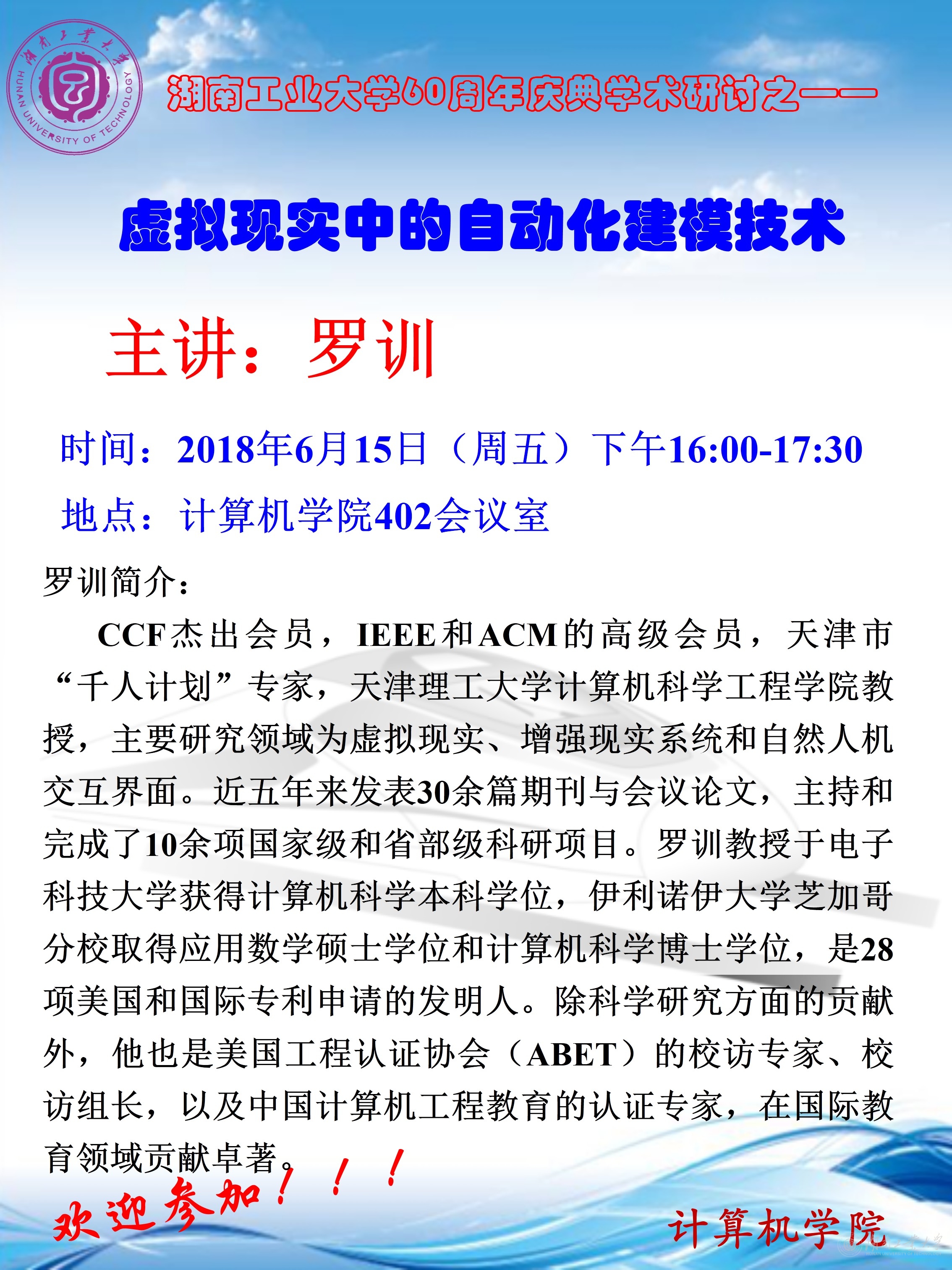 【德赢AC米兰官网办学六十周年庆典学术讲座---《虚拟现实中的自动化建模技术》】