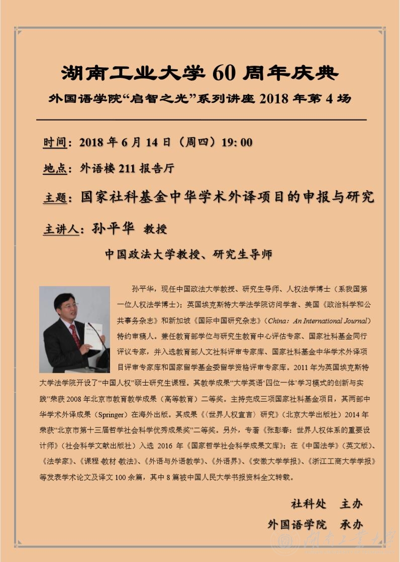【德赢AC米兰官网办学六十周年庆典学术讲座---《国家社科基金中华学术外译项目的申报与研究》】