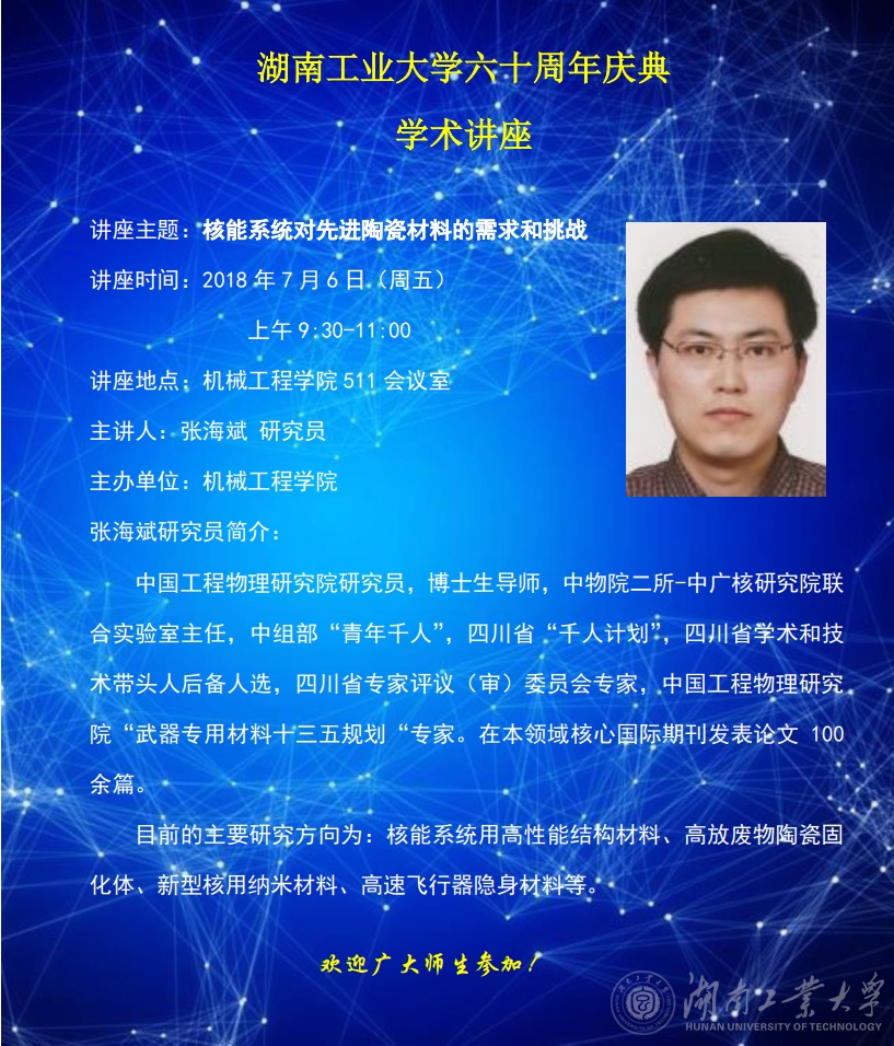 【德赢AC米兰官网办学六十周年庆典学术讲座---《核能系统对先进陶瓷材料的需求和挑战》】