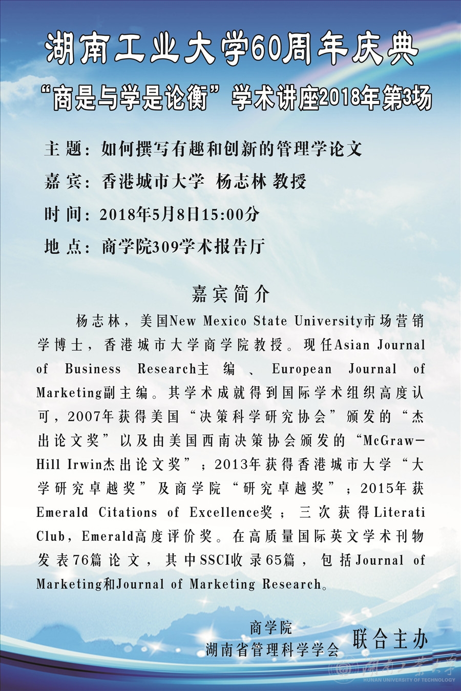 【德赢AC米兰官网办学六十周年庆典学术讲座---《如何撰写有趣和创新的管理学论文》】